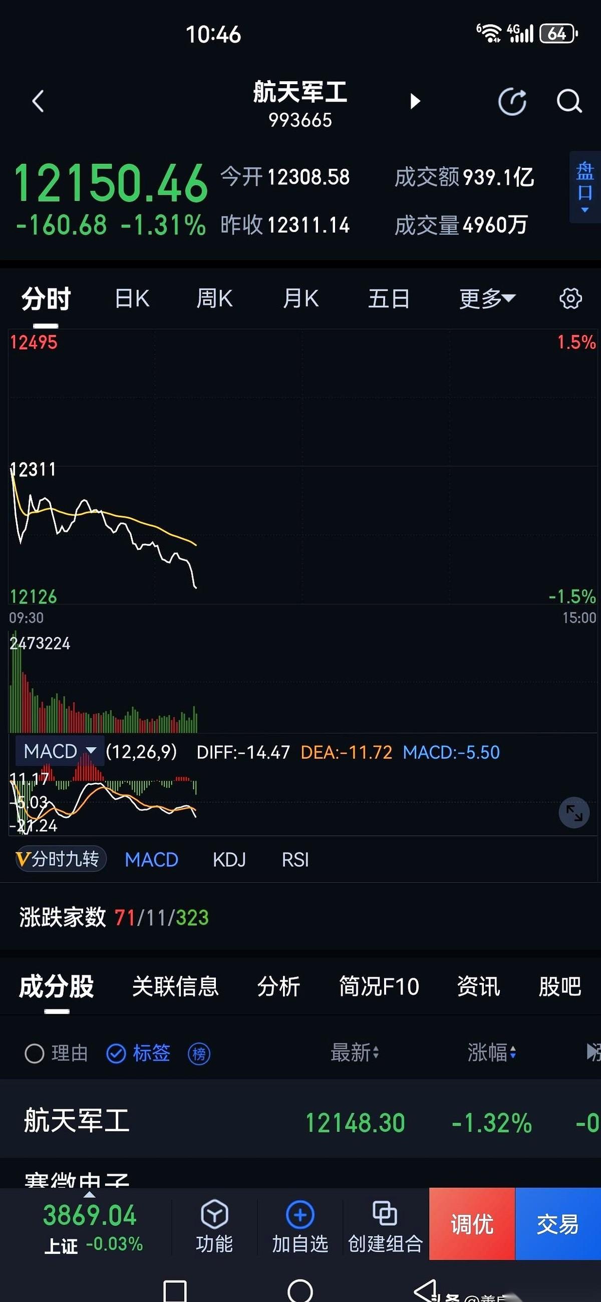 人家那边红红火火,我们这边稀里哗啦。 就离谱。 昨天还喊着要上天、要出海的那些军工股,今天集体趴窝。 说白了,场子里那帮热钱,就是一帮墙头草,哪儿有风往哪儿倒,一点儿格局都没有。玩的是心跳,不是价值。 他们是不是忘了? 真以为那几艘船、那几架飞机,是K线图画出来的?那是咱们的底气,是真金白银、一代代人拼命干出来的。这是能随便看空的吗? 短视。 今天大盘能不能稳住,就看那帮穿西装的(券商)给不给力了。他们不动,谁都不敢动。 唉,炒股炒到最后,炒的是个啥? 是认知,更是定力。