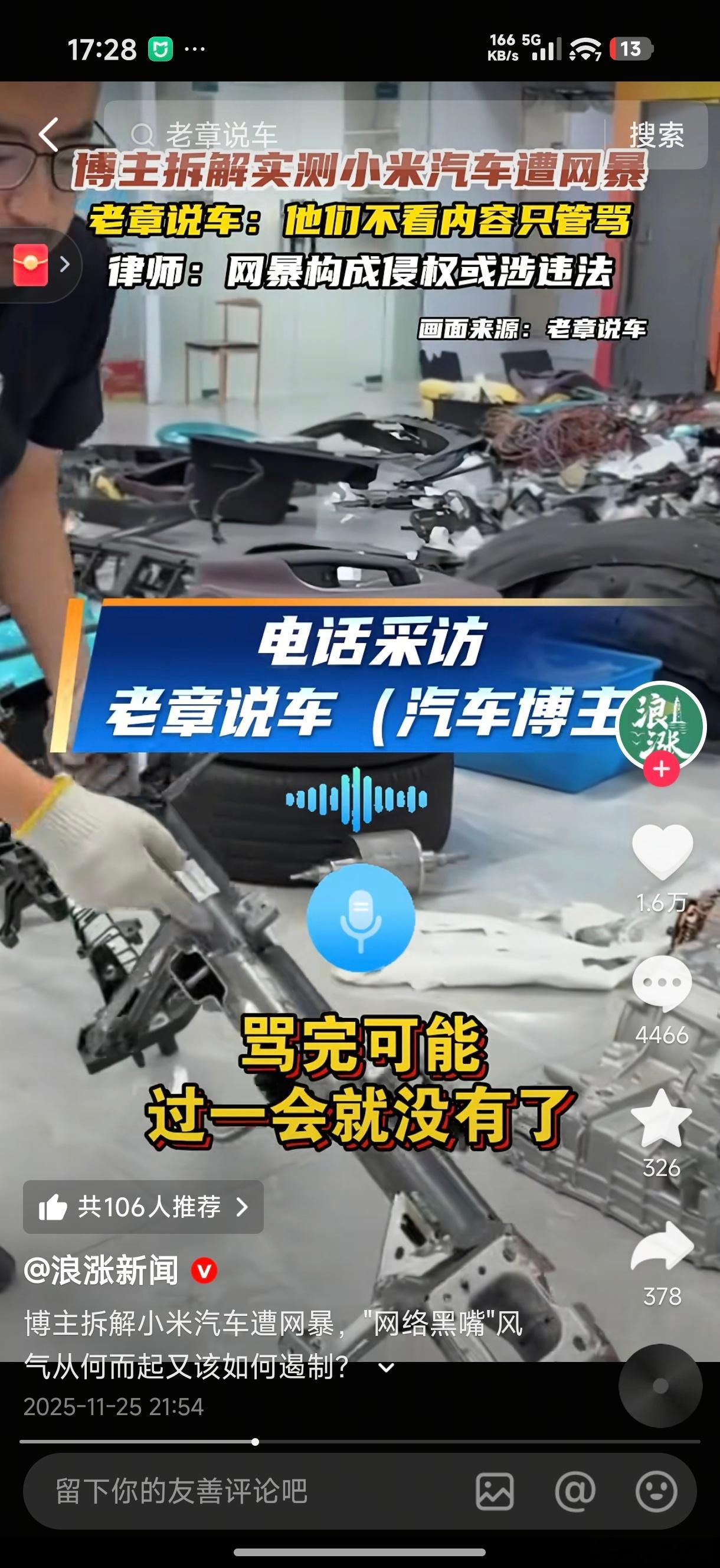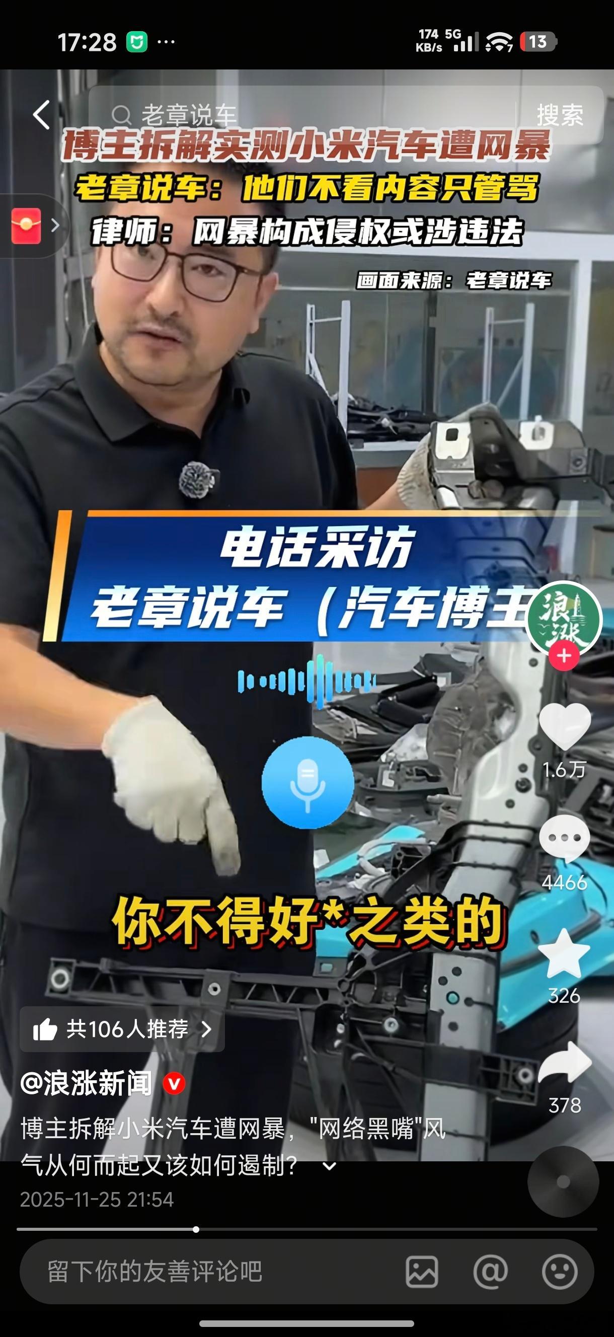 扎心了,本来奔着给小米找毛病的老章说车在拆完小米SU7后,被小米的用料直接震惊了,然后这种实话实说在某些人的眼里,就变成了替小米说话,紧接着直播间最多时涌入了1万多人开骂,而有意思的是,一旦不说小米说别家的车,这些人瞬间就一哄而散,可见就是奔着小米去的,他们不愿意在其他车上浪费“精力”…真的太离谱了…