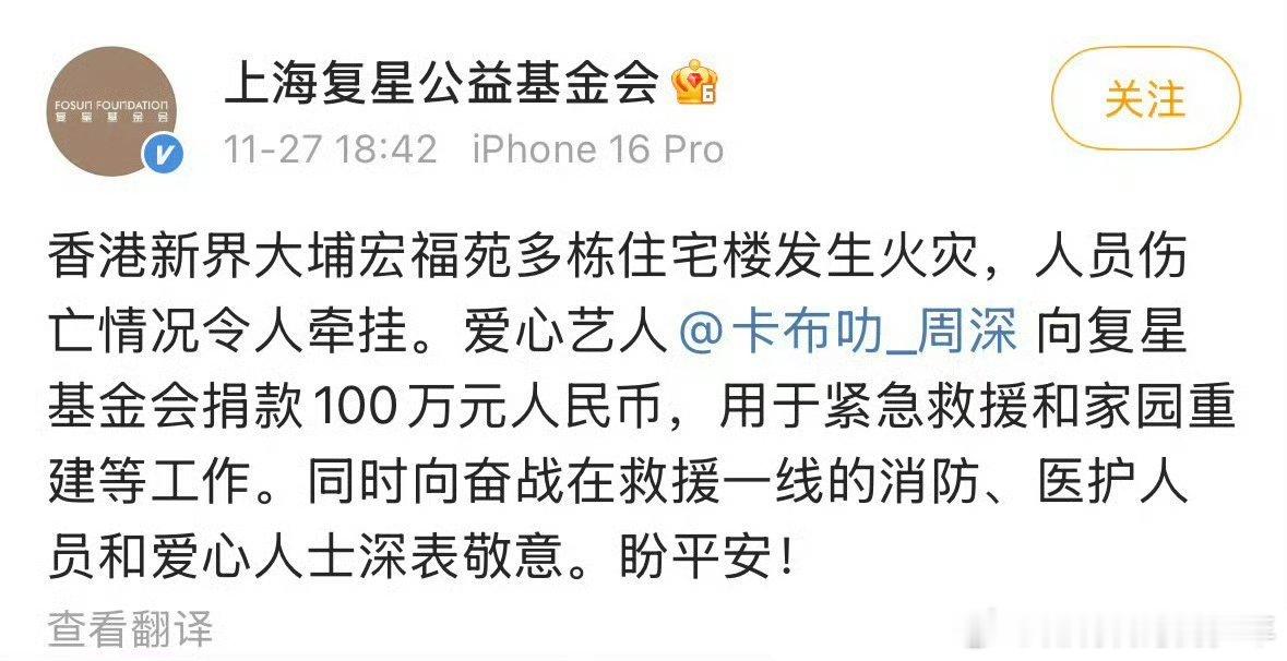周深捐款100万周深向香港捐款100万元人民币,用于紧急救援和家园重建等工作,愿平安!善良的周深,天使周深周深捐款100万驰援香港 周深捐款100万