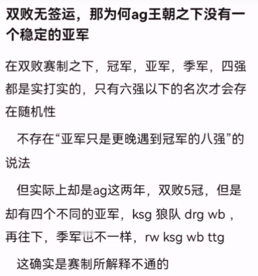 kpl双败无签运,那为何ag王朝之下没有一个稳定的亚军。