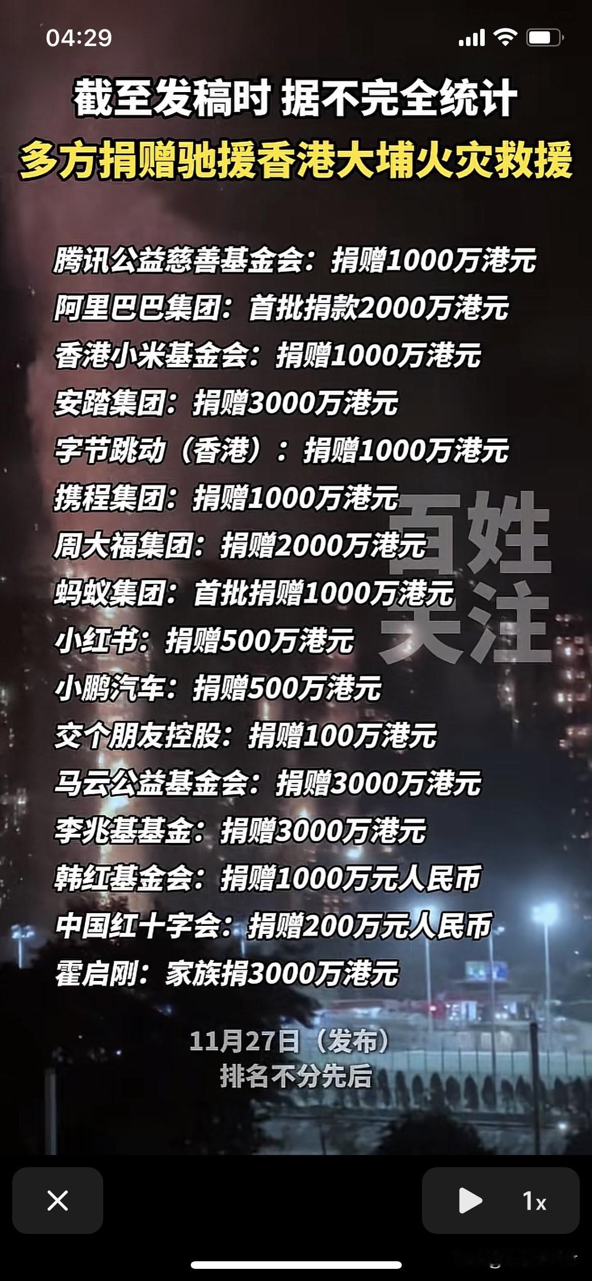 感谢为香港捐款的爱心企业![赞] 当年香港资助内地洪灾,还有汶川大地震。当年香港捐款两百个亿给汶川如今内地支援香港。都是中国人,互相帮助一家人。 安踏3000万港元 还有蜜雪捐了2000w 韩红基金会捐赠1000w 陆续还会有捐款的。 港元和人民币差不多。 以后买手机必须买小米,买衣服就买361,富贵鸟,特步,李宁,安踏,喝奶茶就喝蜜雪冰城,买金银珠宝就买周大福,买车就买比亚迪,小朋! 所以为什么要支持民族企业,是因为在关键时候他们能挺身而出。