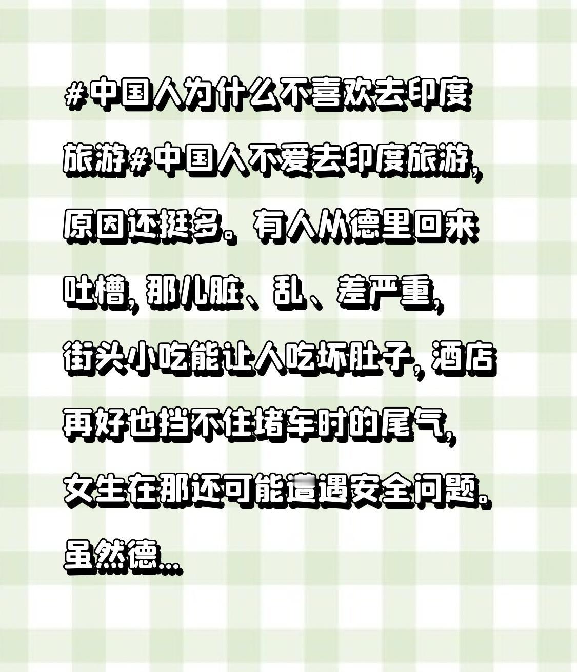 印度恢复对中国公民发放旅游签证,想吸引咱去消费拉动经济。可印度旅游基础设施差、服务不完善,安全和卫生隐患多,和咱的期待差距大。虽说泰姬陵出片,恒河晨祭震撼,但整体体验像开盲盒,好的时候少,坏的时候多。所以,很多人对去印度旅游还是挺谨慎的。