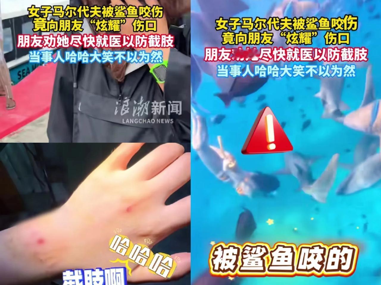无知者无畏!一位中国女游客在马尔代夫度假时,不顾自己正处于生理期,下水潜水,还主动追赶护士鲨,玩耍,结果 一条护士鲨扭头咬住了她的手腕,可面对朋友的劝阻,她却不以为然 从她拍的视频里能看到,她在水里追着护士鲨跑,那架势跟追家里的宠物狗似的,完全忘了自己正处于生理期,更没把野生动物当回事。 护士鲨就算脾气温和,那也是野生海生动物啊!被人突然逼近本来就会警惕,再加上生理期的血味在海水里快速扩散,刺激到它的本能,下一秒就扭头咬住了她的手腕。 上岸后,她不仅没半点紧张,还把青紫带血窟窿的伤口凑到朋友面前炫耀,笑嘻嘻地讲自己追鲨鱼的经历。 朋友看着伤口都紫了,鲨鱼牙印又深又清晰,还有明显刮痕,急得劝她赶紧去医院:“这要是感染严重,可能要截肢的!” 结果她倒好,一脸无所谓,还指着小臂上方开玩笑:“是从这儿截吗?没事,回去歇两天就好了。” 真不是夸张,她这是同时踩了两个致命坑,还完全不当回事。 首先,生理期下水追野生动物本身就是拿命赌。这个阶段身体抵抗力本就下降,容易疲劳,血味在海水里扩散速度极快,对鲨鱼来说就是强烈的刺激信号。 护士鲨的“温和”是相对的,它再温顺也是野生动物,被逼近时的反击不是脾气不好,而是刻在骨子里的生存本能,根本不会管你是不是在开玩笑。 其次,被咬伤后的感染风险比想象中可怕多了。手腕的青紫已经说明鲨鱼咬得力度不轻,破皮的伤口里,海水里的细菌和鲨鱼口腔里的微生物早就虎视眈眈。 感染这东西不会立刻爆发,往往是拖个几天突然恶化,到时候真要是引发严重感染,别说笑了,能不能保住手臂都难说。 我真的觉得,旅行的意义是放松,不是放纵无知。换了异国他乡的环境,不代表大自然就会对你网开一面,野生动物更不会因为你是游客就手下留情。 所谓的“无知者无畏”,在我看来就是对自然缺少最基本的敬畏之心。你以为的“好玩”“刺激”,背后可能藏着致命的风险。 敬畏自然从来不是胆小,而是对自己的生命负责。别把任性当勇敢,也别把野生动物的容忍当成理所当然。 你见过旅行中哪些“作死”操作?如果遇到这种被野生动物咬伤的情况,你会第一时间去医院处理吗?