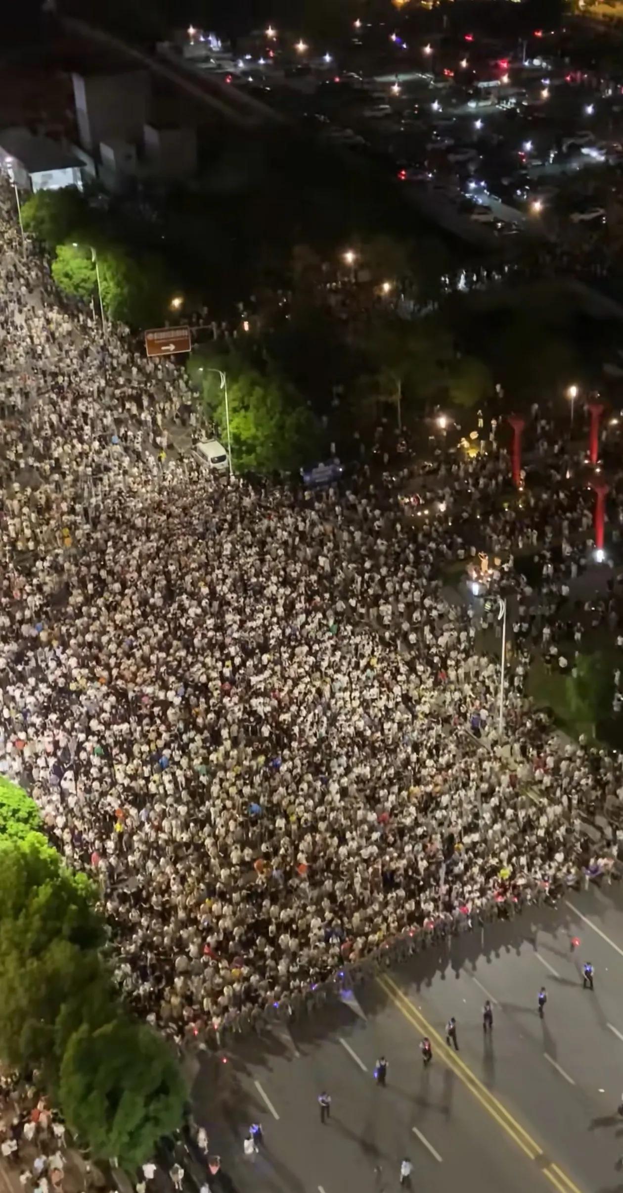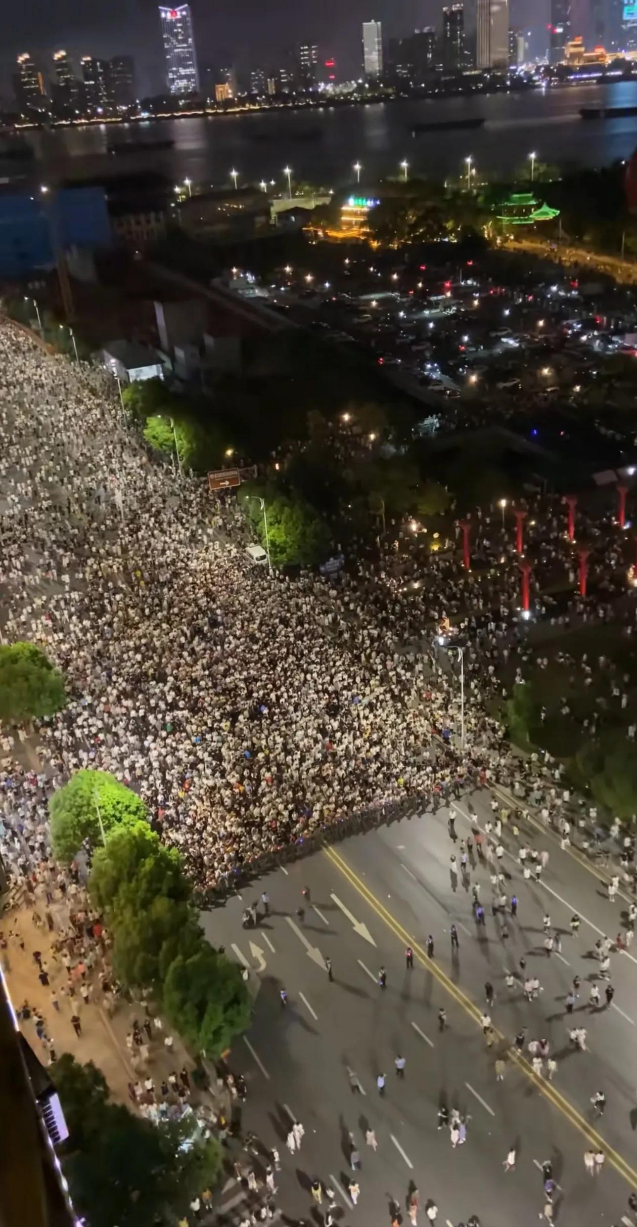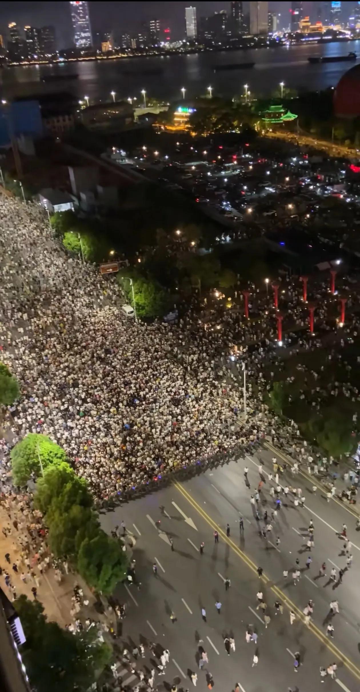 南昌烟花表演秀散场后武警战士护送百万观众有秩序缓慢离开