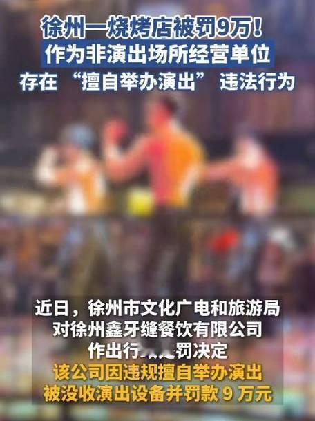 吃烧烤还能看现场演出?徐州这家“鑫牙缝”烧烤店玩砸了!因擅自安排演出,直接被文化执法部门重拳出击——话筒音箱全没收,外加9万元罚单! 网友调侃:“这下真是赔了音箱又折金”“老板是不是把罚款当点歌费了?”奉劝各位商家:开店规矩要牢记,想搞演出先报批,不然设备充公+罚款,这代价够办多少场演唱会啊! 烧烤店擅自办演出被罚9万