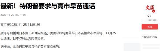 11月25日中午,根据日本《每日新闻》的报道,就在高市早苗和特朗普的通话之后,日