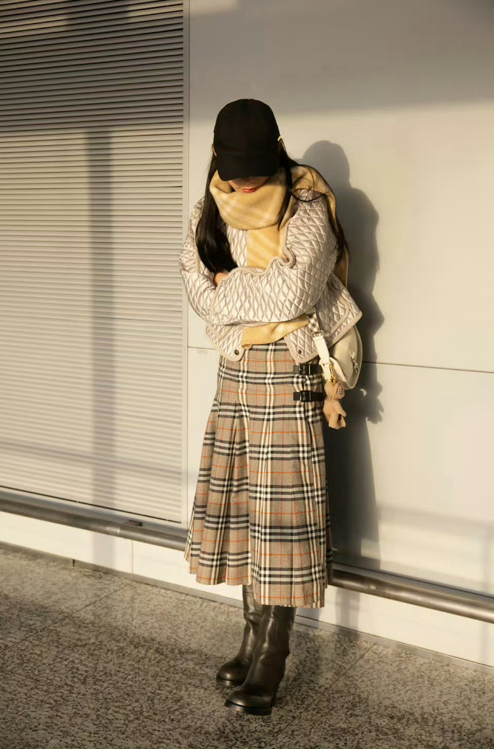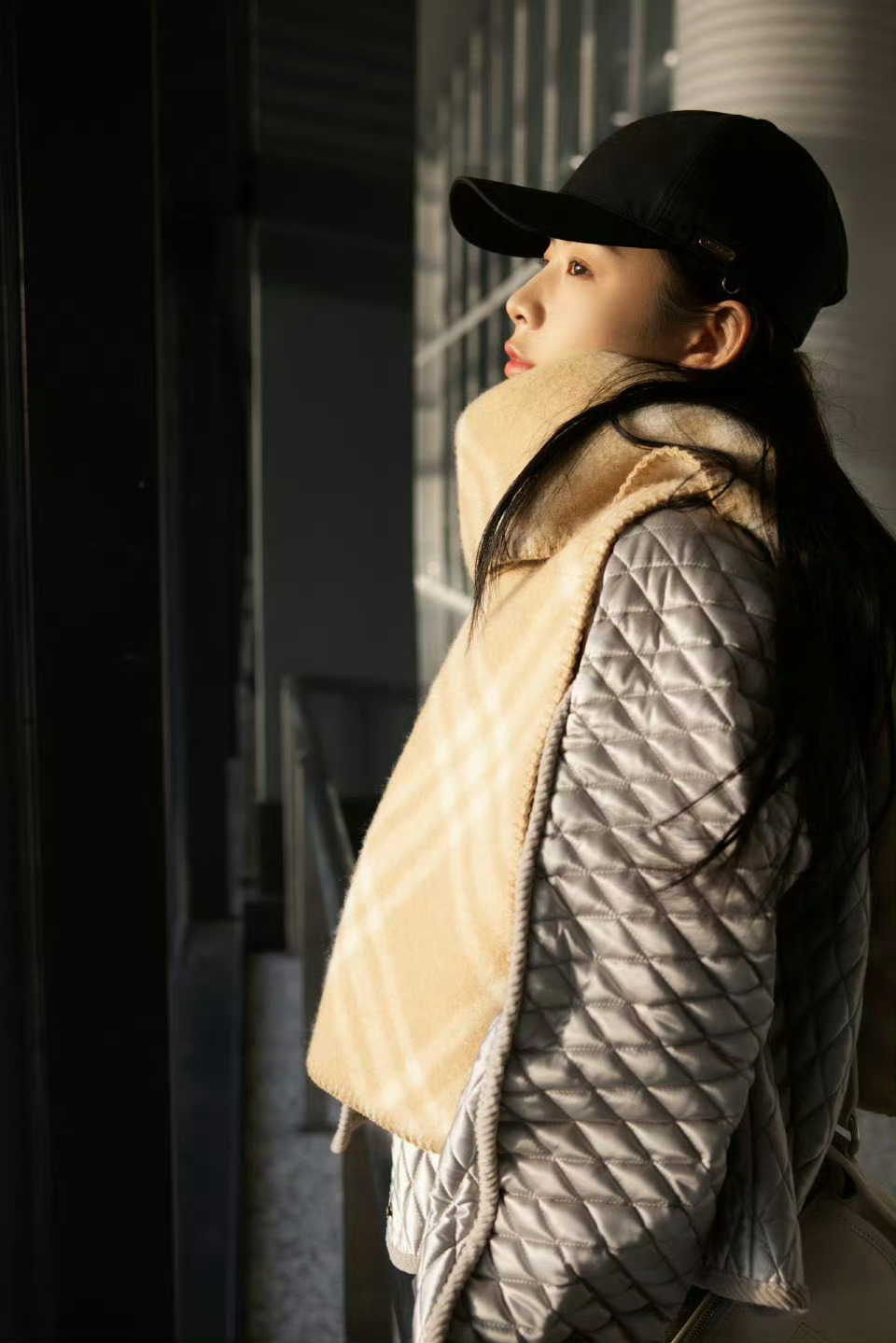 陈丽君 in Burberry 📷🍂 菱格夹克配格纹半裙和围巾,温暖的英伦冬日格调,明日见~