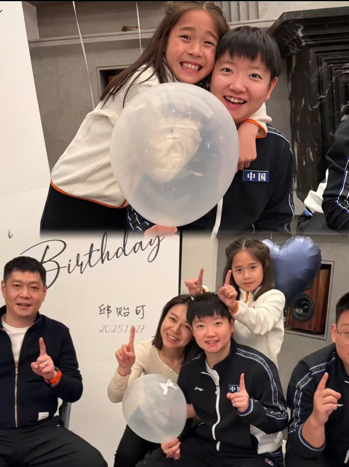 孙颖莎与恩师女儿亲切合照邱贻可40岁生日宴上,孙颖莎与恩师女儿搂脖贴脸合影,笑容清甜超治愈,师徒家般的温馨氛围扑面而来~
