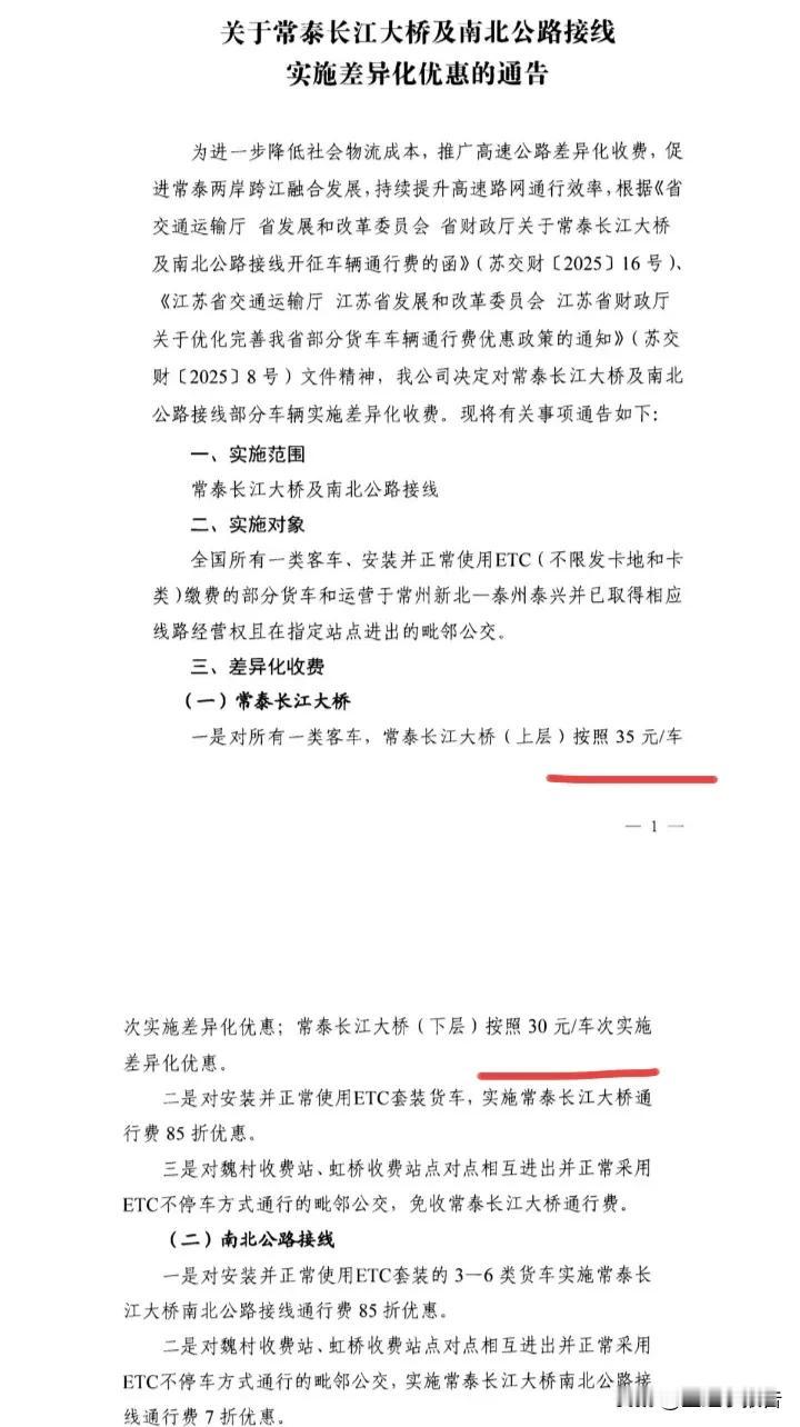 常泰长江大桥国庆期间日均车流量超过9万辆,足以证明这座大桥的价值。即便是非节假日期间,大桥双向也有约4万辆的车流量。 美中不足的是,大桥收费标准相对较高,上层针对普通家用小型客车35元每次和下层30元每次的通行费用,让两地跨江通勤压力重重。 历经五年建设,一座跨度高达1200米的斜拉桥出现在常州约7公里的沿江江面上,常州终于有了一座过江通道—常泰长江大桥。这对于常州和泰州都是一件大好事,两地应该联合针对跨江通勤需求给予补贴,促进跨江融合发展。常泰长江大桥 常州 泰州 (图片引用自网络)