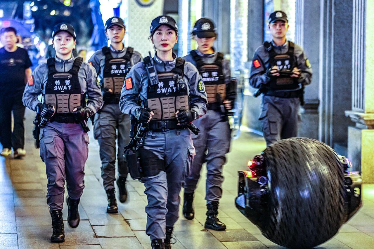 中国版的人形机甲战警来了!? 据外媒27日报道:中国将部署可更换电池的人形机器人,用于在越南边境巡逻。 这是继杭州的球型机器人巡警之后,我们又一次要给世界带来震撼了? 不敢想象,未来的科幻世界就这样提前到了。 机器狗、机器狼、无人机、无人潜水艇、无人驱逐舰、人形机甲战队,未来的战争将彻底被改变了。海陆空全部机械化、无人化。试想一下,当你十万大军准备殊死搏斗时,对面来了密密麻麻的一群机器狗,后面还跟着一群人形机甲战队,天上的无人机蜂群、无人机战斗机、无人机轰炸机一遍遍先行犁地,这十万大军如何打?还怎么打?甚至会出现战斗人员远在千里之外,以人员零伤亡结束战斗。 顺便提一句,网络里有张有意思的图片(图三),鸿蒙智驾版的歼20。 是不是未来只要说一句:“小艺小艺,帮我把对面的敌人解决了”,然后就可以睡觉等结果了?