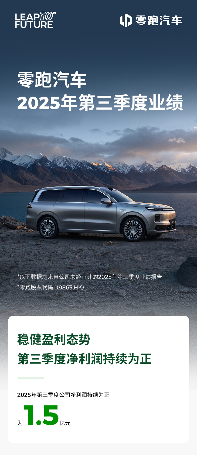零跑的增长也很亮眼,第三季度卖了17.39万辆车,比去年同期翻了一倍还多(增长101.8%),营收194.5亿元,净利润1.5亿元,实现了连续几个季度盈利。前不久零跑还宣布,提前完成了2025年卖50万辆的目标,现在又喊出2026年卖100万辆的口号。不过零跑每辆车赚的钱比较少,海外市场发力是它赚钱的关键之一,第三季度就出口了1.7万多辆,1月-9月累计出口快3.8万辆了。