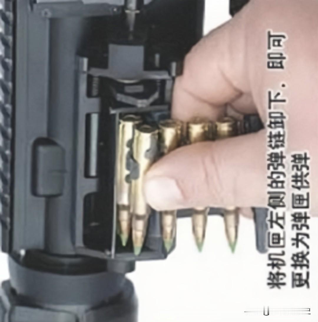 美国Slide Fire武器公司BFR-556A轻机枪 BFR-556A轻机枪是在M4卡宾枪的基础上造出来的,两种供弹方式都能来,弹链或者弹匣都行,就是只能半自动打5.56×45北约弹。 这枪左边机匣加了个弹链供弹的部件,能用M249轻机枪的M27可散式弹链,弹链拆得快,拆了就能用弹匣。 大家都知道,半自动的轻机枪在实战里没啥用,所以改这么一下就是为了看着拉风。 Slide Fine武器公司还在枪上装了他们有专利的SSAR-15模块化枪托/握把零件,伸缩枪托能调长短,握把和普通步枪不一样,不是前面贴扳机护圈,而是顶部伸过来包了一点扳机护圈。