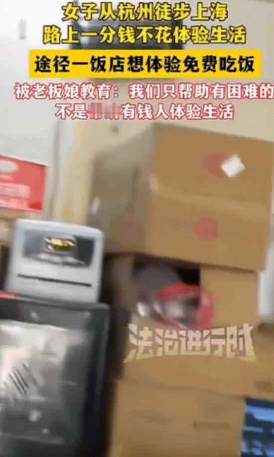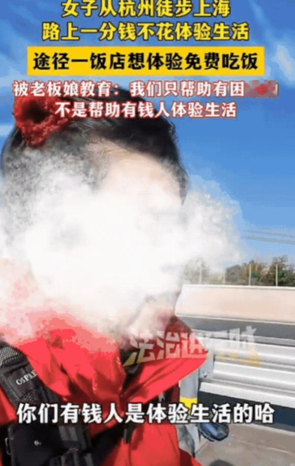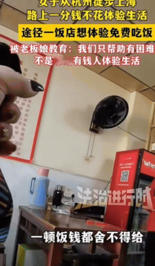 白嫖翻车了!女子从杭州徒步上海,路上一分钱不花体验生活,途经一饭店,想体验免费吃