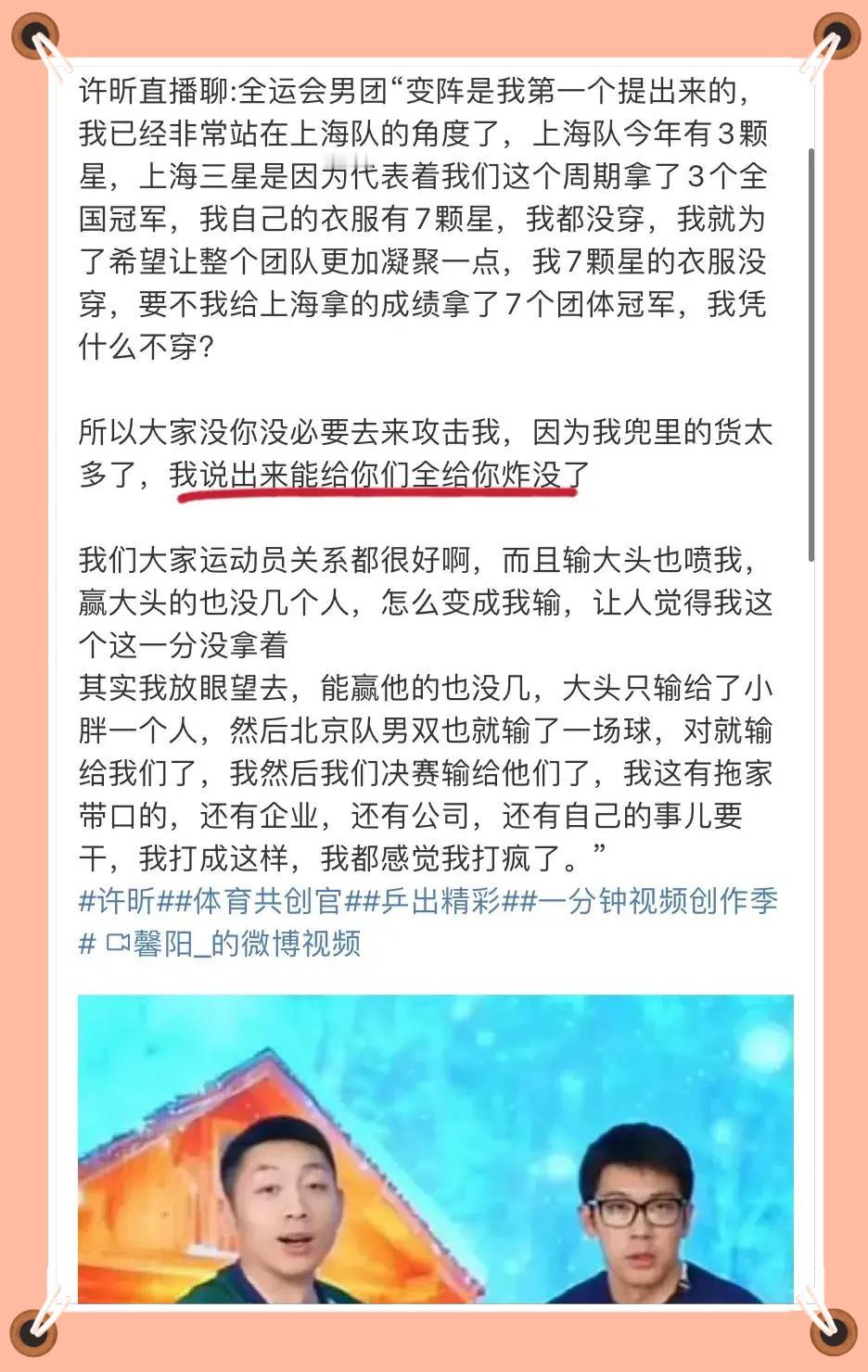 于何一直播开怼:为国争光的许昕也挨黑?请学会尊重!