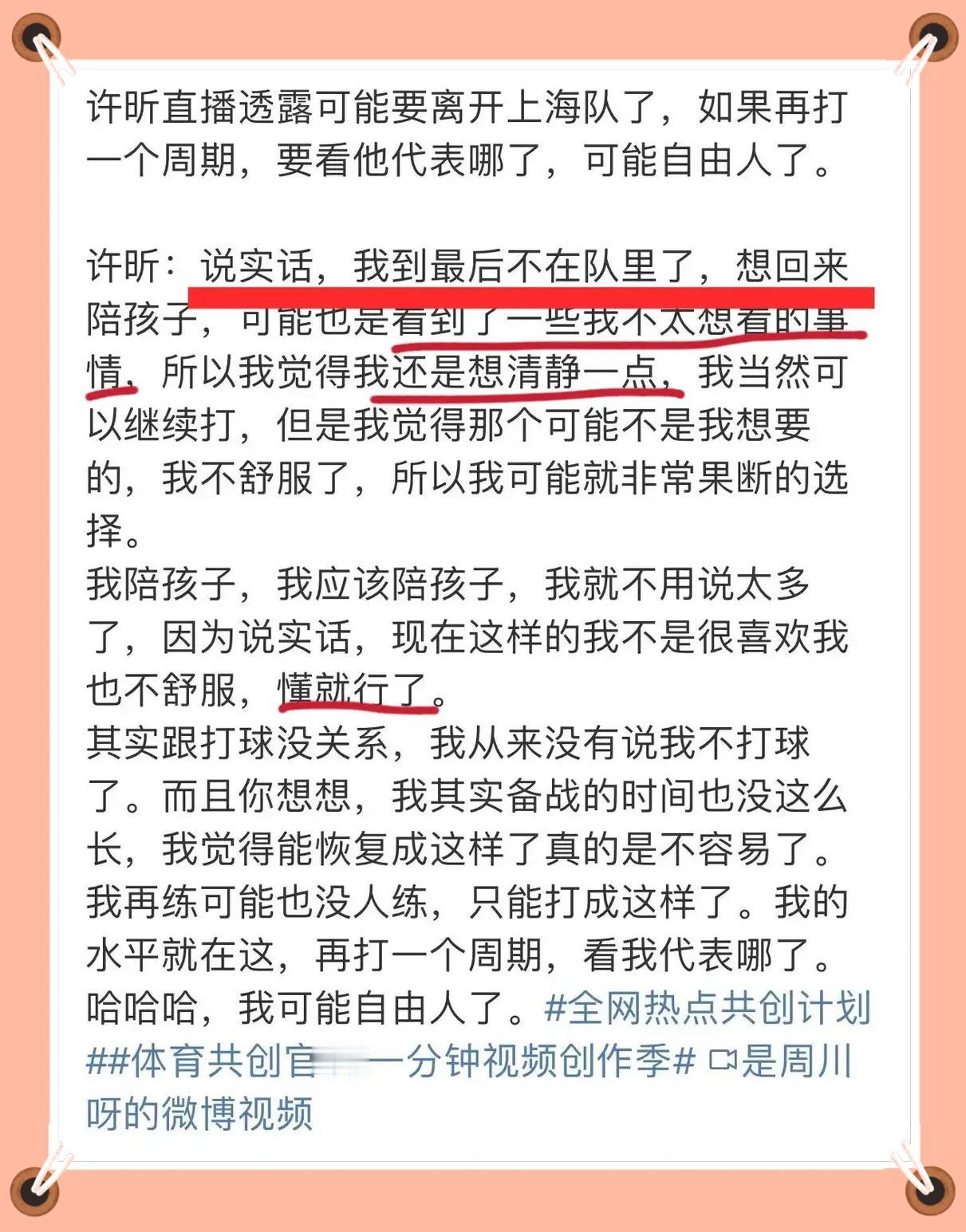 于何一为许昕发声,“为国家做贡献的人你们也要黑,真逗”“要学会尊重” 全运会结束,舆论又来了一波, 这一次是冲着许昕来的。 许昕在前天晚上直播的时候也说了很多。 于何一在直播间为许昕发声。 他说,昕哥是为国家做贡献的人, 两届奥运会,为此一直努力,就打了一个全运会, 他已经竭尽全力,但是还会被黑, 他说这真的挺逗, 可以支持自己喜欢的运动员, 但是最起码要学会尊重。 许昕这个年龄,带着伤病,为上海队取得了7个团体冠军, 就因为这一次,反而被黑, 以前的种种都一笔抹掉。 每个人都有喜欢别人的权利,但是不要去拉踩另外的人, 每件事情都有他的两面性, 每件事情都有他的来龙去脉, 都不是一个点就可以判定的。 许昕直播的时候,他说,自己为上海队拿了7个团体冠军,而自己没有穿7颗星的衣服, 他是希望团体更加凝聚。 这一次上海队没有夺冠,许昕收下了很多人的攻击, 他回应说:“大家没必要来攻击我,我兜里有很多货,我说出来能给你们全给你炸没了” 这句话,不是威胁,球迷们看到的只是这一场球, 而实际上内部的沟通,安排和训练, 只有他们知道。 他说,输王楚钦被喷,但是打赢王楚钦有几个,他也只是输给了小胖, 他感觉自己都打疯了。 许昕说,离队是因为看到了一些不想看到的事情,他不舒服了,所以果断选择回家陪孩子。 他说,懂就行了。 他说,上海队没有表示的话,他再打一个周期,不知道会代表谁了, 江浙沪先溜达一圈。 自己可能就是自由人了。 老将不易,谁都有上山和下山的时候, 他背负责任和压力, 克服伤病,站到升国旗的赛场上的时候, 是他自己一拍一拍让国旗升起来的。 而其他所有的人,我们仅仅是辅助, 当然,这是很多很多人一起努力的结果, 但,不能因此去磨掉他的功劳和荣耀! 于何一的这句“学会尊重”是对的!