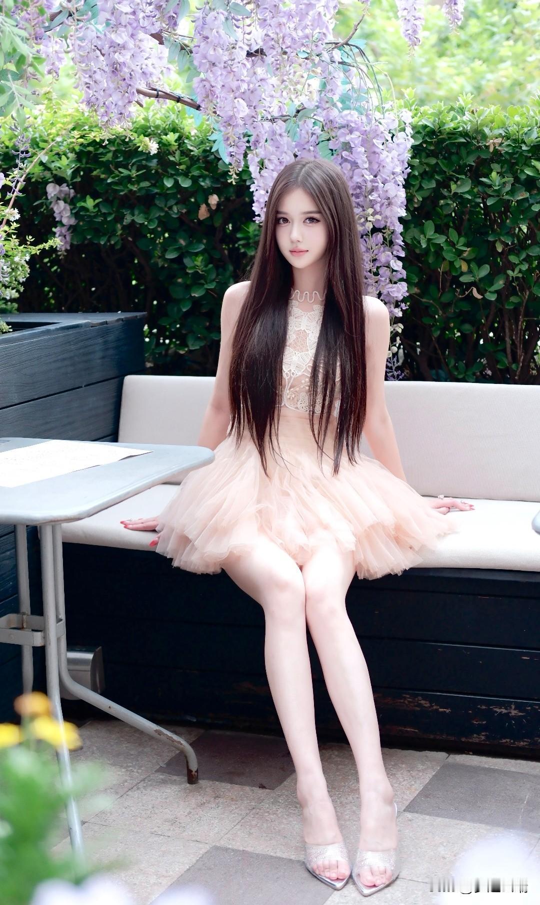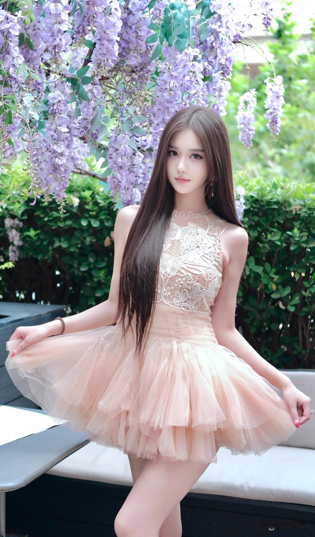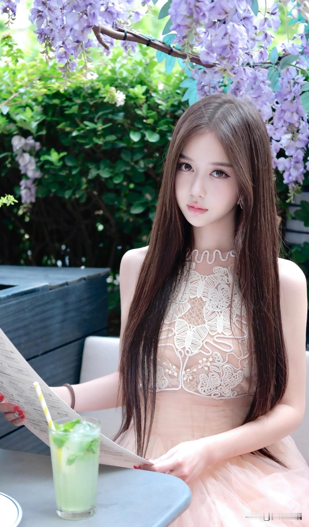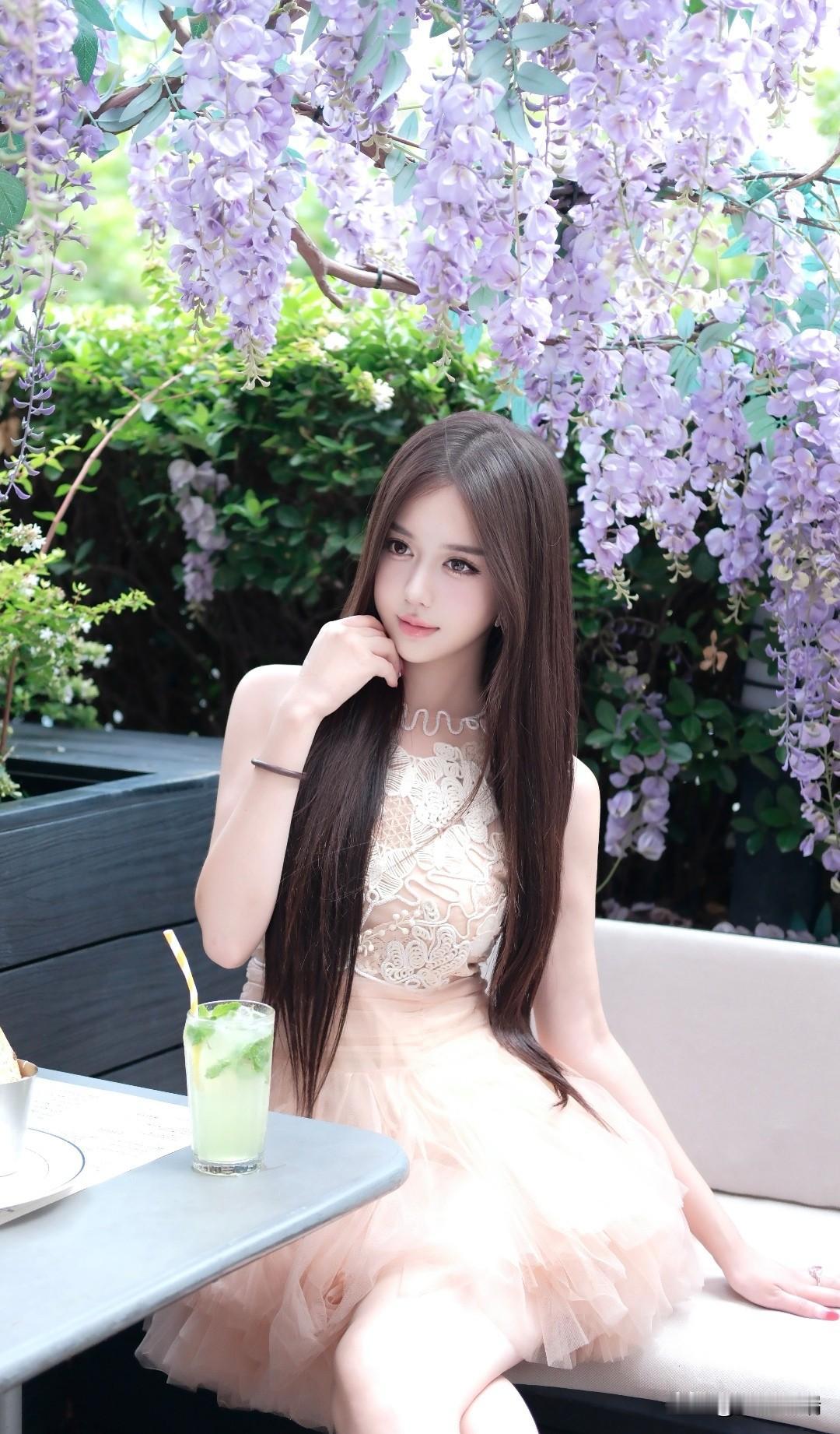 在紫藤花海中享受清新时光,甜美少女与自然美景的完美融合。🌸💕