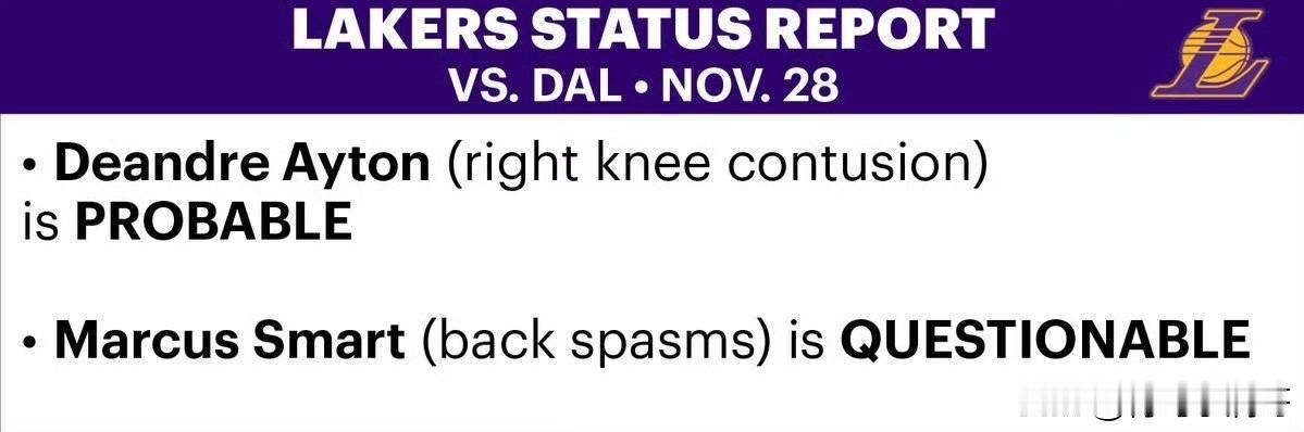 独行侠vs湖人比赛预告!!!独行侠对阵湖人比赛预测,湖人被看好! 北京时间11月29日,也就是明天周六,独行侠目前已经乘飞机飞往洛杉矶了,他们将客场挑战湖人队,双方因为之前的大交易被联系在一起,而且也是西部非常受关注的两支球队,一起来看下吧! 湖人伤病方面: 艾顿膝盖伤病大概率出战比赛,而斯玛特延续了背部疾病他的状态比艾顿低了些,目前是出战成疑。 独行侠伤病方面: 弗拉格可以打,浓眉出战成疑,预计赛前才能知道,欧文和莱夫利不打,埃克萨姆报销。 目前从ESPN给出的预测结果看,湖人竟然有高达八成的胜率,这也太吓人了吧,完全是一点也不看好独行侠啊。 当然湖人毕竟是西部第二,而独行侠却是西部倒数第二,这么看也差不多,但是独行侠的实力还是没有全部的展现出来,一起锁定明天中午11点,期待精彩的比赛! 独行侠 NBA 独行侠 湖人赛程 NBA独行侠 独行侠队阵容 nba预测 湖人 东契奇 詹姆斯 浓眉