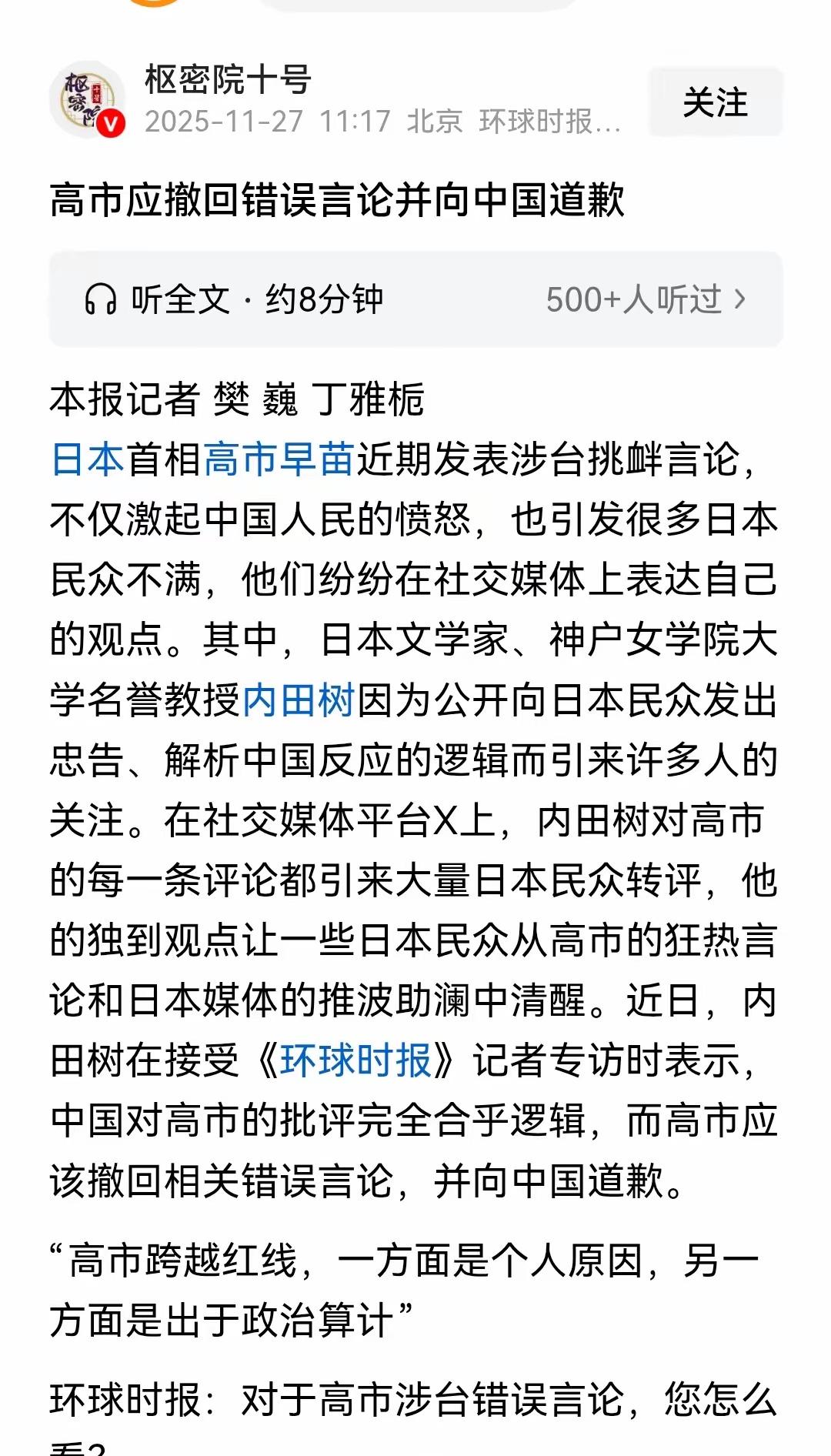 真搞不懂有些媒体的脑回路,日本右翼政客高市早苗大放厥词挑衅中国,咱们正当反击让对方承压本是理所应当,反倒有人急着替日本政府支招找台阶,这未免也太“善解人意”过头了吧? 人家压根没想着改正错误,右翼势力还在背后撑腰,哪有半分认错的诚意?既然敢公然越界挑衅,把恶心人的话甩出来,就该承担后果,哪有轻飘飘一句“以后不犯”就想翻篇的道理?错了就是错了,就得拿出实打实的认错态度,而不是咱们上赶着给对方递台阶。 对外宣传讲究分寸没错,但对内咱们更该拎清立场,没必要惯着这种不讲理的挑衅。对待别有用心的挑衅,软柿子只会让人得寸进尺,硬气守好底线才是最该有的态度。你觉得面对这种恶意挑衅,咱们该一味包容还是坚定反击?来评论区说说你的看法~