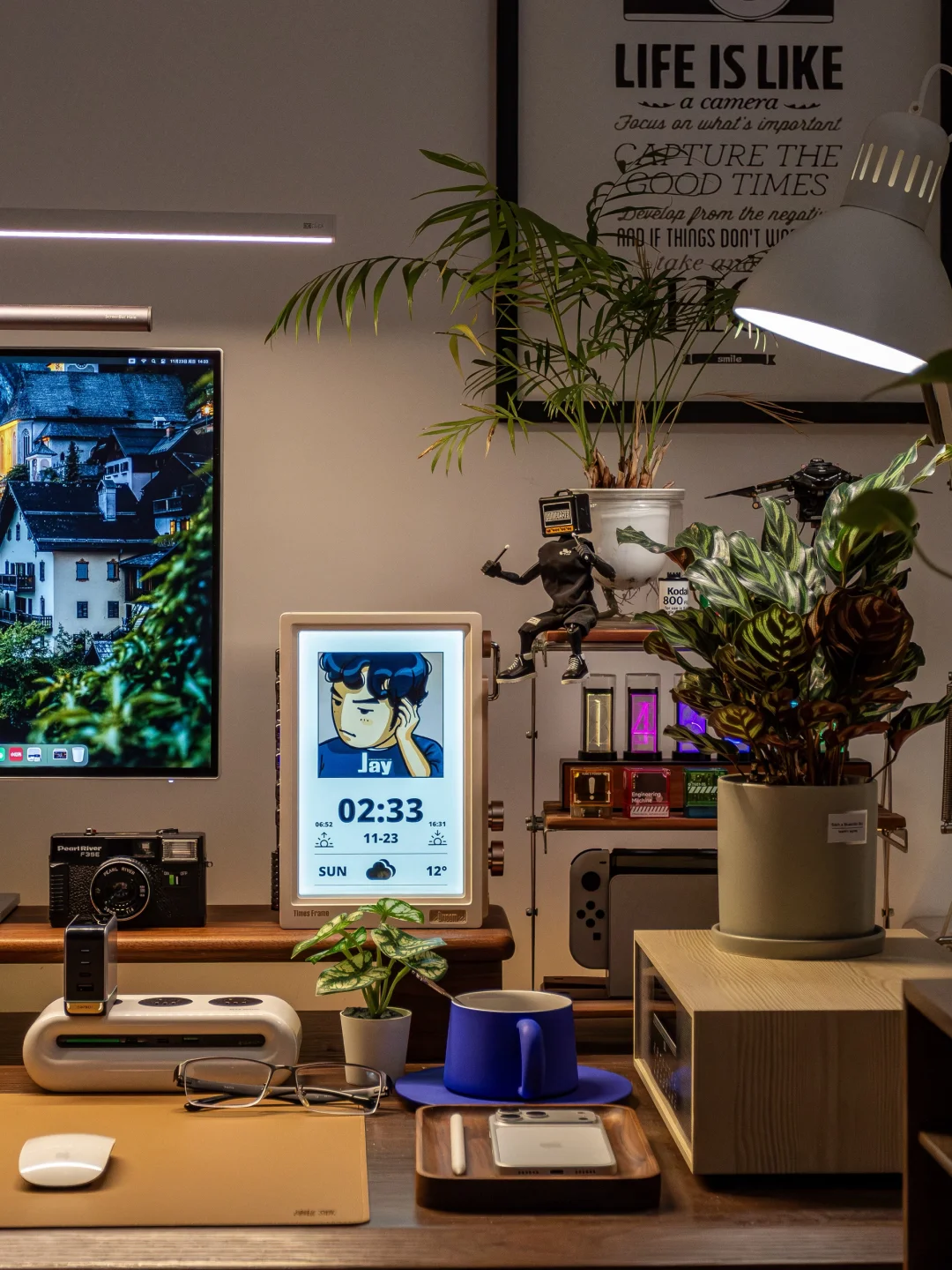 我的桌搭都是繁中有序,东西多而不乱,有的时候觉得自己的桌面很乱不是因为东西多,而是因为桌面上的充电设备种类繁多,导致充电插头好几个来对应不同的电子设备。喜欢桌搭的都懂,桌面理线是影响桌面颜值的关键!线一乱就瞬间没了精致感!