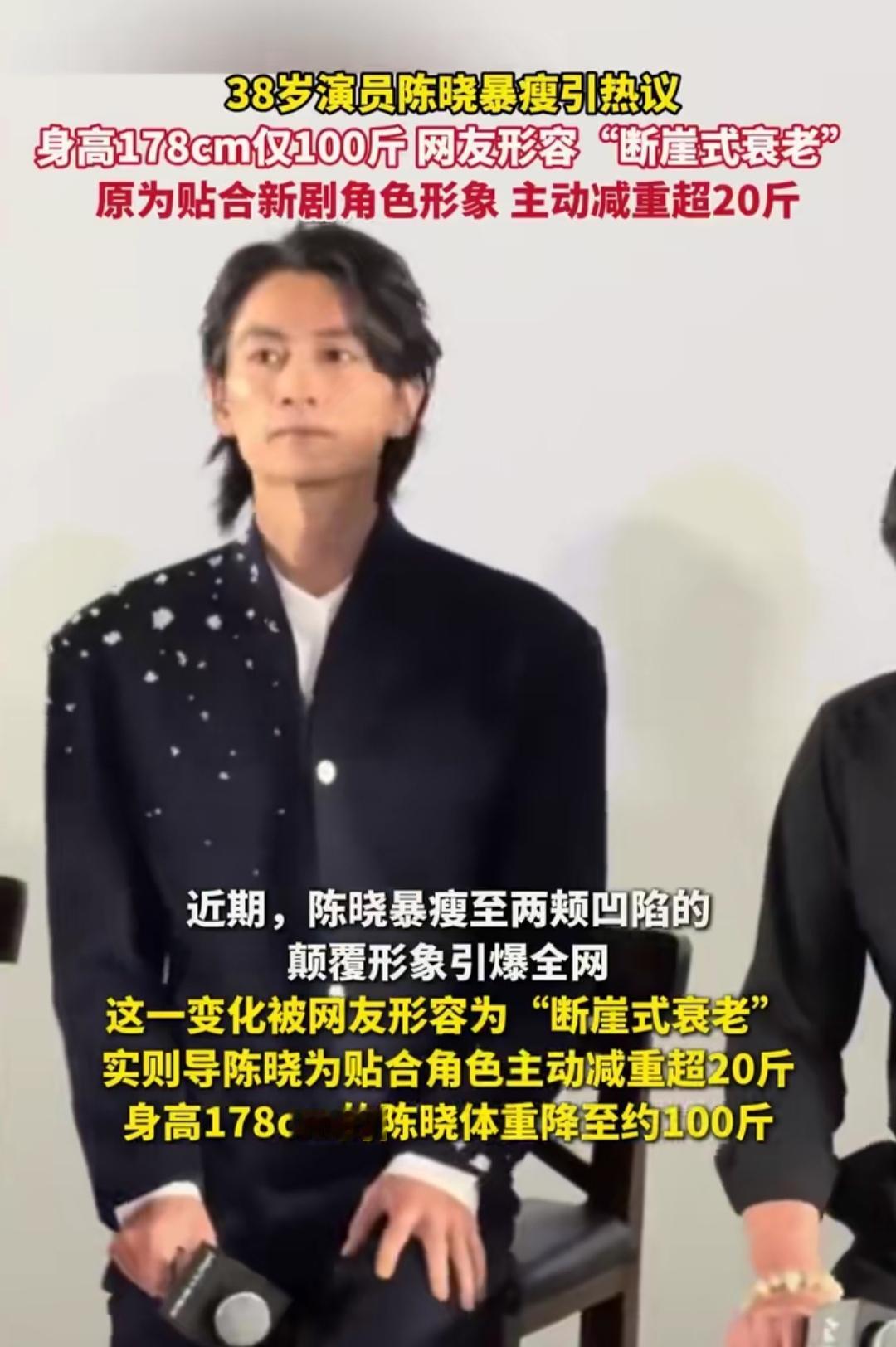 谁能想到!陈晓178cm瘦到只剩100斤,两颊凹成“纸片人”被骂“断崖式衰老”,