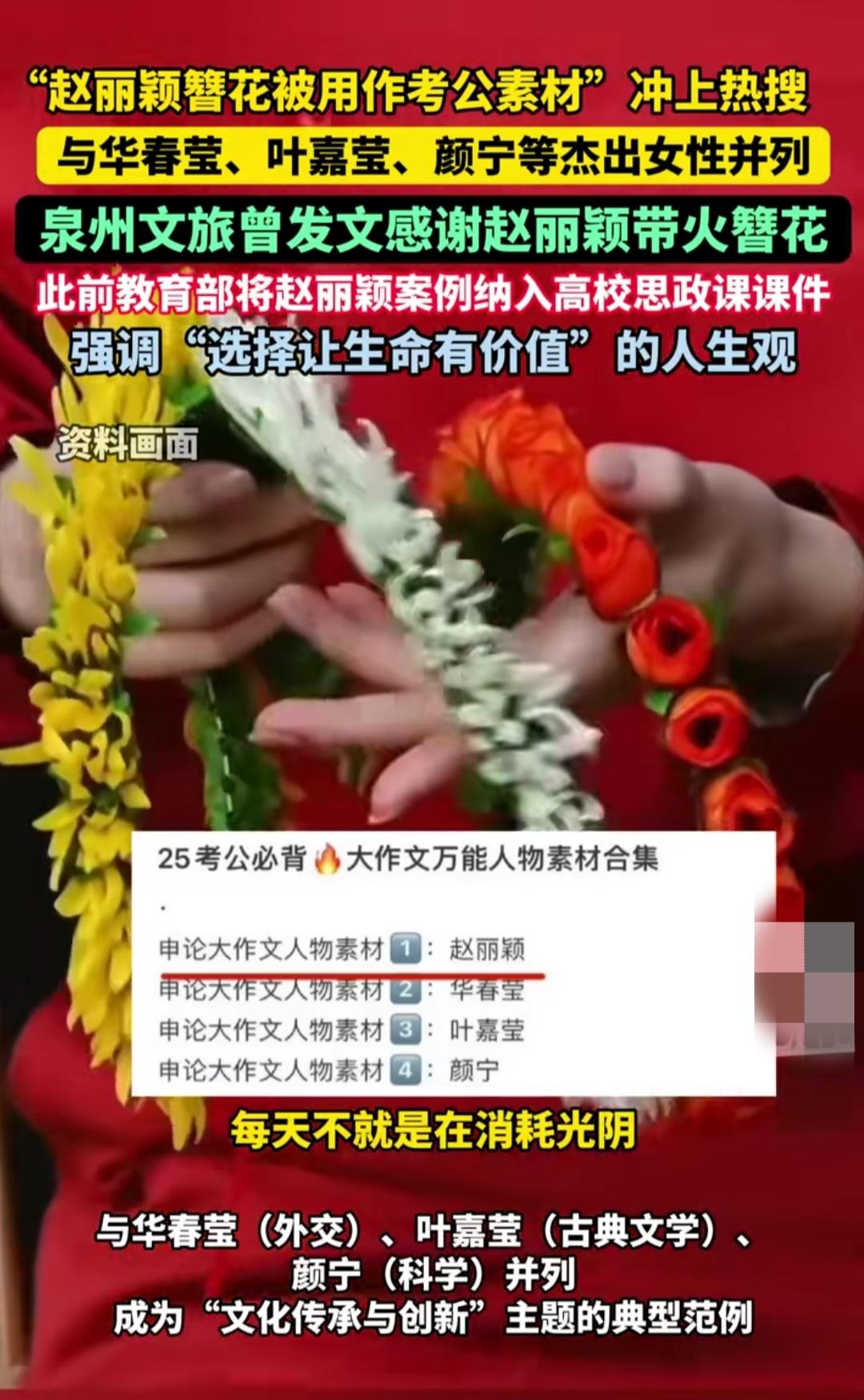 谁能想到!赵丽颖簪花居然成了考公素材,还和华春莹、叶嘉莹这些顶尖女性并列,这波跨界真的让人意想不到,却又觉得情理之中。 其实这背后藏着最朴素的道理:真正的影响力从不是流量堆砌,而是源于对文化的敬畏与传播。赵丽颖带着簪花亮相时,没刻意炒作却让泉州非遗火遍全网,这种自然流露的文化认同感,远比生硬说教更有力量。 考公素材的认可、教育部的纳入,恰恰说明大众需要这样的正能量榜样——不是遥不可及的偶像,而是用实际行动让传统文化“活”起来的普通人。这样的跨界,才是流量最该有的样子,你觉得呢?