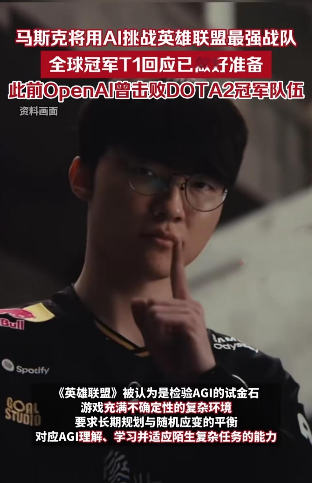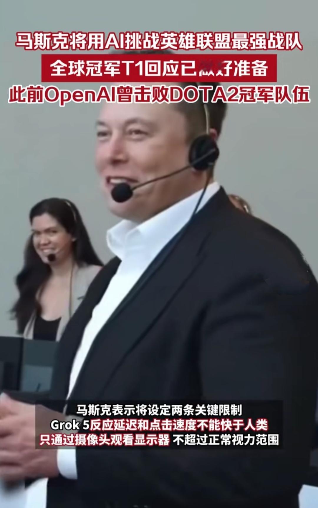 谁能想到马斯克拿《英雄联盟》当AI的“成人礼”?说让Grok 5明年战T1,还加了两条狠规矩:像人一样看屏幕、反应不能比人快——这哪是比游戏,是赌AI能不能真懂“活着的复杂”。 Faker直接回“我们准备好了”,这话戳中多少玩家:以前AI赢游戏靠“读代码开挂”,这次得跟T1拼“团战该不该卖队友”“小龙坑要不要赌视野”。这些藏在操作里的“人心”,才是峡谷最难的题。 其实马斯克赌的哪里是游戏?Grok 5要是能懂“残血反打是勇气还是冲动”,以后机器人就能懂“路口让行是礼貌还是安全”。等2026年这场架,看的不是谁推水晶,是AI能不能真接住“人的温度”。