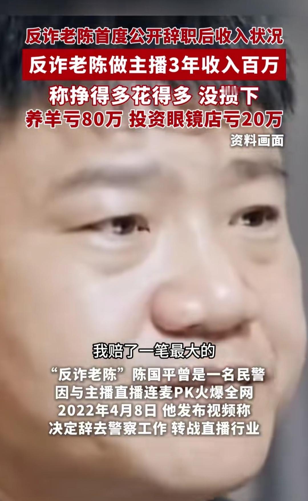 谁能想到!反诈老陈辞职三年挣了100万,最后居然一分没攒下,还坦言“最看不起现在的自己”,这落差真让人唏嘘! 曾经他穿着警服连麦反诈,一句“下载国家反诈中心APP”火遍全网,可流量冲昏了头,错把平台光环当本事,三天就批下来的辞职,成了人生转折的分水岭。打赏、带货挣的钱,投养羊亏80万,开眼镜店打水漂,初心早被流量裹挟。 从被央视点名批评“丢了本分”,到连麦说低俗话人设崩塌,再到公开求职遭质疑,老陈的经历戳中很多人:别把平台给的底气,当成自己的能力。流量是把双刃剑,守不住初心,再风光的起点也会跑偏。 如今他仍想做反诈,可信任碎了难拼凑。人生没有回头路,守住本心才走得远,你觉得他还能翻盘吗?