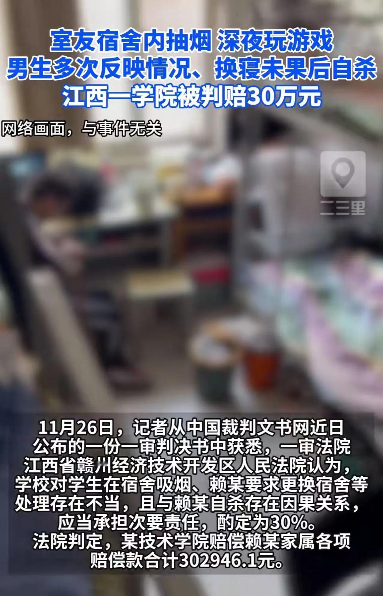 一个大学新生 ,怀揣梦想,憧憬未来,踏进校园,幻想着大学校园的精彩生活,但是令他没想到的是,5名舍友4个抽烟,每天打游戏到凌晨2点,从早到晚寝室里游戏声、欢笑声、叫骂声夹杂在一起,尖锐刺耳,烟雾四处飘散,令人窒息,难以忍受,这样的生活环境严重的干扰了他的生活 和学习,让他觉得寝食难安,他向学校反映情况,多次求换寝室,但学校却要求他适应环境,并没有重视他的要求,他感到很绝望,最后选择了自杀,新生的父母很是难过也很悲愤,状告学校,结果学校被判次责,赔偿30万元!网友愤愤不平:学校应负全责!该生已向学校报告,校方既不制止吸烟者,也不给学生调换宿舍,已是渎职!造成该生死亡,应当追究有关责任人的渎职行为,并给予惩戒! 这起悲剧让人不禁深思:校园到底是避风港,还是成了“火药桶”?一个原本充满希望的新生,因为宿舍环境的恶劣,最终选择了生命的终结。这不仅仅是个别学生的悲剧,更折射出我们社会、学校管理体系的深层次问题。 试想,一个刚踏入大学门槛的年轻人,满怀梦想和期待,却在最基本的生活环境中遭遇如此不公与忽视。舍友抽烟、深夜打游戏、噪音扰人,明明多次求助未果,反而成为绝望的导火索。学校的冷漠与失责,让这位学生的生命之光逐渐暗淡,直至熄灭。 这件事让我们不得不问:学校的责任到底在哪里?难道仅仅是“次责”就可以了事?学生的生命安全和心理健康,难道只是次要的“责任”吗?在这个信息快速传播的时代,学校的管理疏漏、对学生诉求的漠视,正是在无形中放大了悲剧的发生可能性。 更令人愤怒的是,面对如此严重的问题,校方的回应似乎缺乏应有的责任感。没有及时采取措施,没有有效调解,没有为学生提供应有的保护。这种冷漠,折射出某些教育机构在管理上的缺失和责任感的缺失。 我们不能只停留在声讨,更要看到背后的制度问题。学校是否有完善的宿舍管理制度?学生权益是否被充分保障?学校应当成为学生的庇护所,而不是“火药桶”。这起事件,应该成为一次深刻的反思:我们是否真正把学生的安全放在第一位?是否建立了足够的机制,去预防类似悲剧的再次发生? 这也是每一个家长、每一位学生、每一位教育工作者的共同责任。我们要呼吁,相关部门要彻查责任人,追究渎职者的责任,同时也要推动制度改革,让每一个学生都能在安全、健康的环境中成长。 生命无价,没有任何理由可以成为漠视的借口。希望这起悲剧成为一道警钟,唤醒我们对校园安全、对学生权益的重视。只有这样,才能让未来的校园不再成为悲剧的温床,而是真正成为孕育希望的地方。