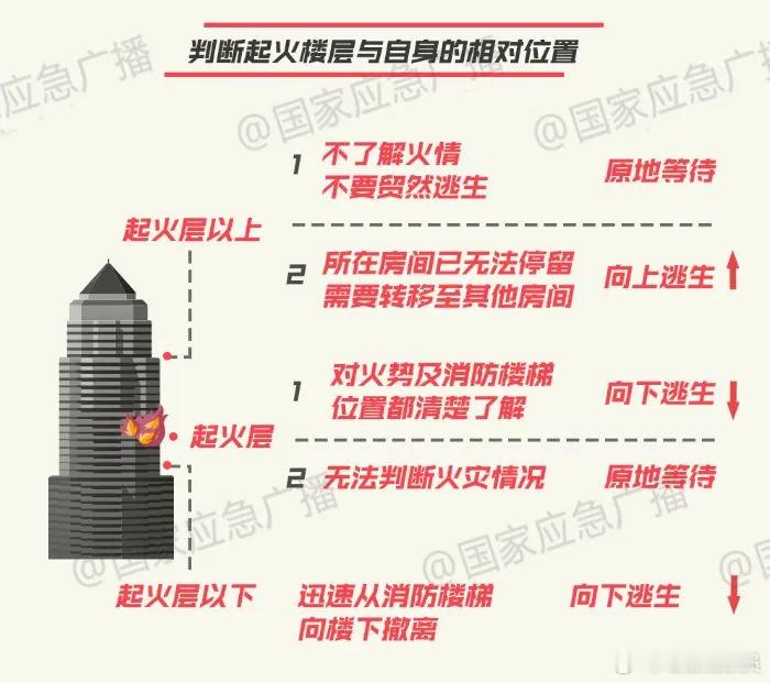 香港大火启示:逃生是向上跑还是向下跑?据香港消防处今天上午的最新消息,大埔高层住宅的严重火灾,已造成94人遇难。这场惊心动魄大火敲响了消防安全的警钟,当高层建筑发生火灾时,致命的浓烟与烈火瞬息万变,“如何逃生”成为生死攸关的抉择。实际上,逃生决策的关键在于,迅速判断火势与烟气情况,并牢记“小火快跑,浓烟关门”这一黄金法则。消防专家据此提醒逃生的要诀。一、何时应“快跑”?若发现火情较早,火势尚小且处于可控状态,应果断利用身边的灭火器或消火栓进行扑救。如果火势已无法控制,但逃生通道尚未被烟火封锁,则必须立即疏散。在决定逃跑前,务必先用手背触摸门锁或门把手。若温度不高,且观察门底缝隙无烟气渗入,可缓慢开门,确认通道安全后,迅速沿疏散楼梯向下逃生。逃生过程中,需谨记:绝对不可乘坐电梯!应弯腰低姿,用湿毛巾或衣物捂住口鼻,以减少有毒烟气的吸入。穿越常闭式防火门后,务必随手关门,以阻隔火势和浓烟。二、何时应“关门”?如果触摸门把手已感到烫手,或看到烟气正从门缝涌入,这清晰表明门外已充斥高温浓烟。此时,切勿贸然开门!因为几口有毒烟气便足以导致人昏迷窒息。同样,如果开门后发现楼梯间内浓烟弥漫,也应立即退回室内。退回后,第一要务是紧闭房门,并用湿毛巾、床单等彻底封堵门缝,防止烟气渗入。同时,不断向门上泼水,以降低温度,延缓火势蔓延。随后,立即拨打119,清晰告知接线员您所处的具体位置和被困人数,并转移到窗口等易被救援人员发现的位置,通过手电筒、挥舞鲜艳衣物等方式发出求救信号,耐心等待救援。三、向下跑还是向上跑?在符合“快跑”条件时,逃生方向的选择取决于火源位置。基本原则是:优先向下撤离!无论火源在上方还是同层,只要向下的楼梯间无明显烟气,都应选择向下逃生。消防专家通常不建议向上跑,因为人向上奔跑的速度很难快过烟气通过竖井向上蔓延的速度,极易在途中中毒身亡。只有在极端情况下——例如火源在您家楼下,向下的所有通道已被彻底封死,且所在房间也因高温浓烟侵入而无法存身——才可考虑向上转移。目标是逃往天台或寻找本楼的“避难层”暂避。根据建筑规范,超过100米的超高层建筑必须设置避难层,这里具有防火、防烟功能,是紧急情况下安全的“生命方舟”。此次香港火灾中,消防员最终从天台成功救出被困长者,印证了在“向下无路”时向上避险的可能性。然而,这应是万不得已的最后选择,而非首选方案。日常中,我们更应熟悉楼内的疏散通道、安全出口及避难层的位置,做到心中有数,才能在灾难降临时,为生命赢得最宝贵的生机。热门微博 社会热点 香港大火已致94人遇难 香港大火