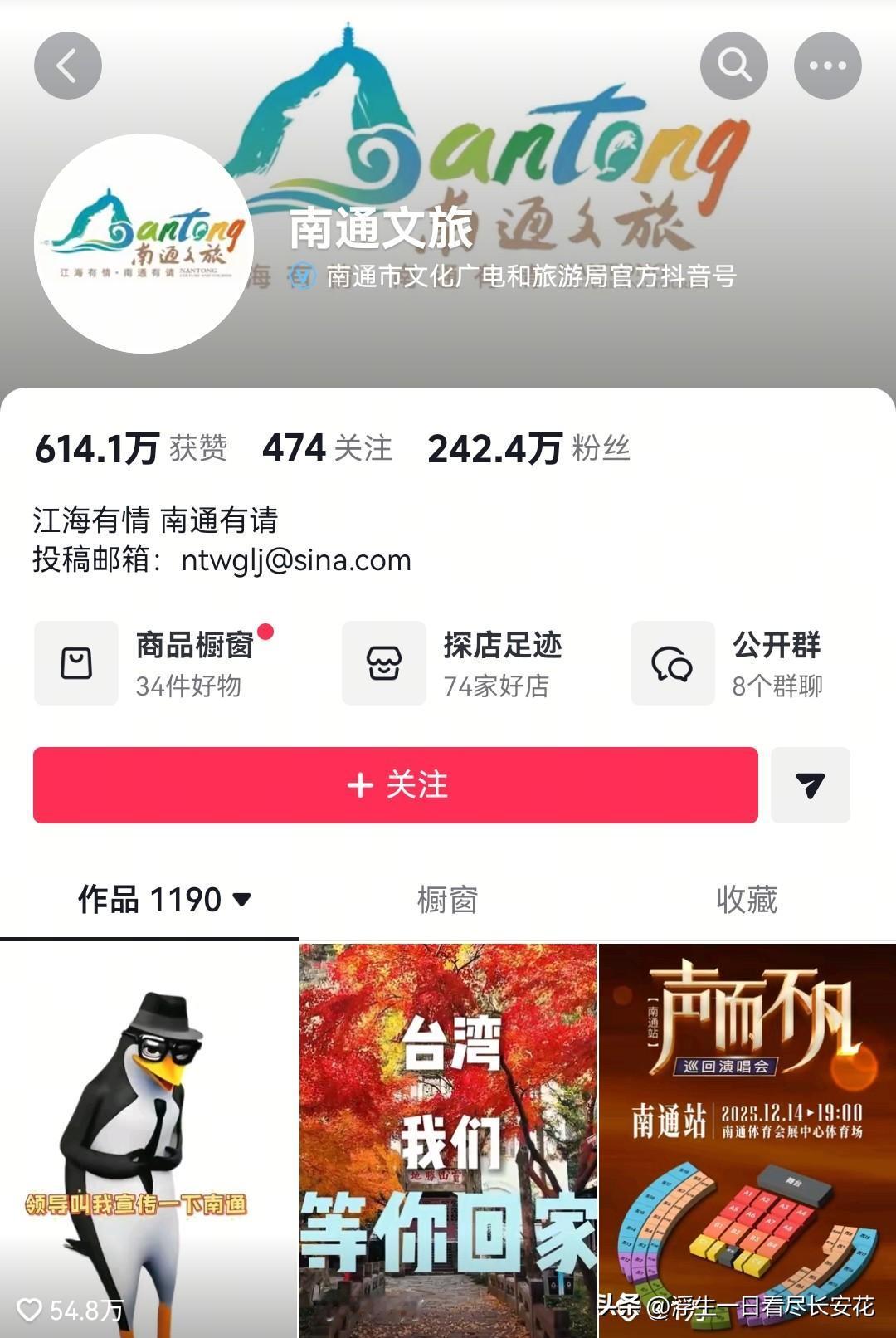 得民心者得天下,如何一句话涨粉百万,南通文旅做到了,六字真言,勇冠三军!南通文旅粉丝234.2万了,在198分钟内,涨粉100万,平均每分钟涨粉约5050人。按照这个速度,一天大约涨粉7272000人,当然,如果是在没有其它干预的情况下,会远超这个数字。 值得一提的是,文旅号粉丝最多的一直都是河南省文化和旅游厅,粉丝228万,近几年都排第一。其次是河北文旅,粉丝213万。第三名是悠游吉林.吉林文旅,粉丝111.8万。如今排名最高的是南通文旅,粉丝一直在涨,目前242.4万,其它跟进的文旅也开始涨粉了,排名会发生翻天覆地的变化。 6个字成就百万文旅账号,此事前无古人后无来者,这次南通文旅赢麻了,真的赢麻了!