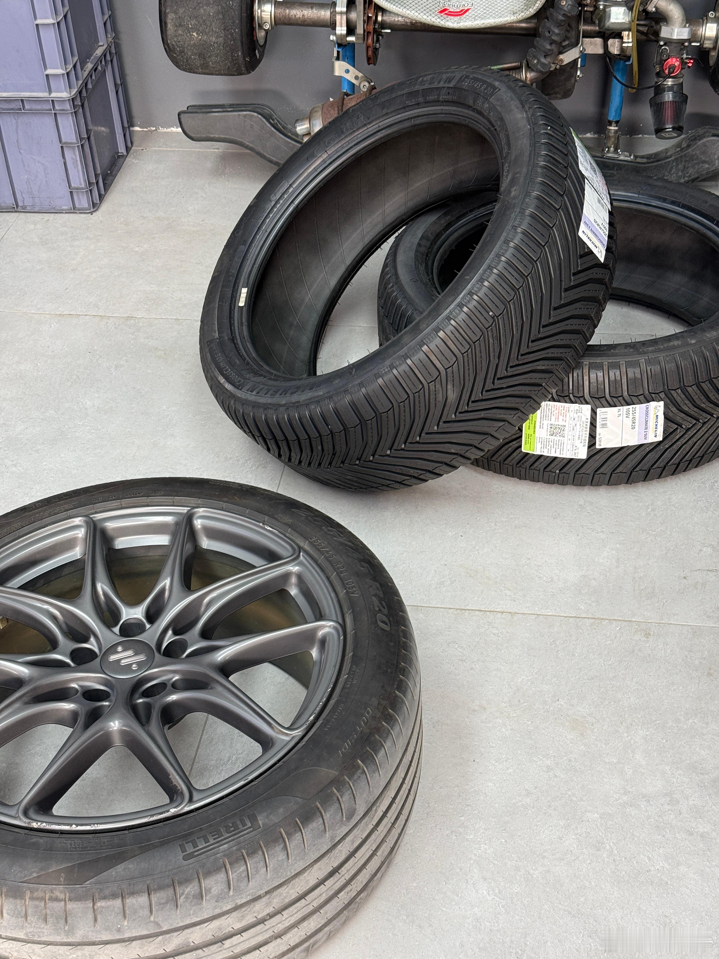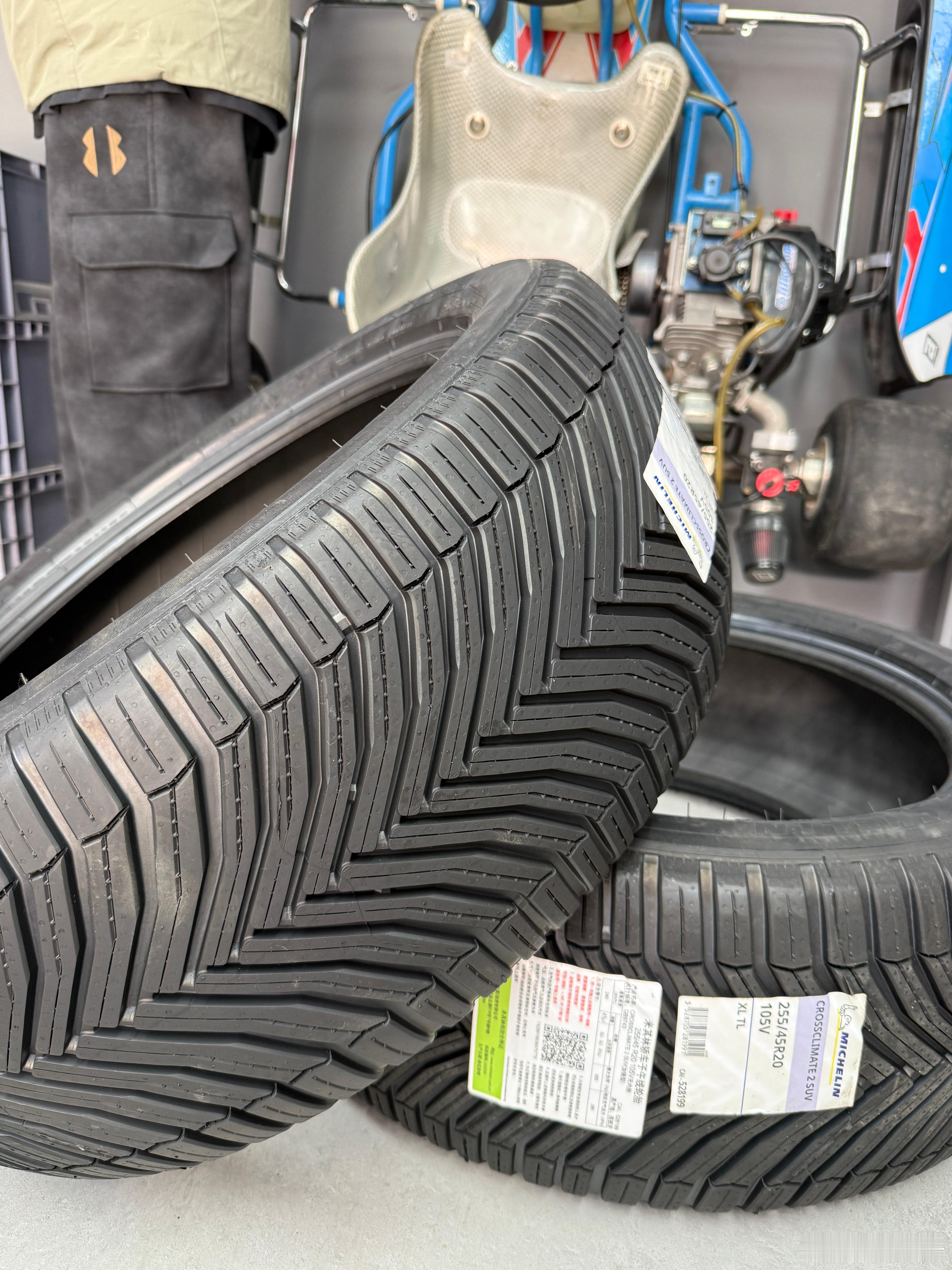 在上海平时用不到雪地胎,米其林说推出了一个可以踩雪的四季胎,于是赠送了一套让我试试。我这个双电机800牛·米,平时踩起来是真爱打滑,今天装上之后,连续崩了几脚都没有声音很安静。抓地力确实可以。同时这胎还有几个特点,橡胶耐高温,即使到了夏天也不会过于软导致磨损快。并且用了米其林衡压科技,确保不偏磨。跨悦系列,感兴趣的朋友可以看看。
