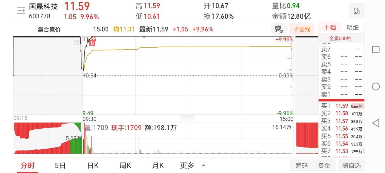 11月28日实盘:东百最终获利出局,国晟板上果断拿货! 1、实达集团 早盘竞