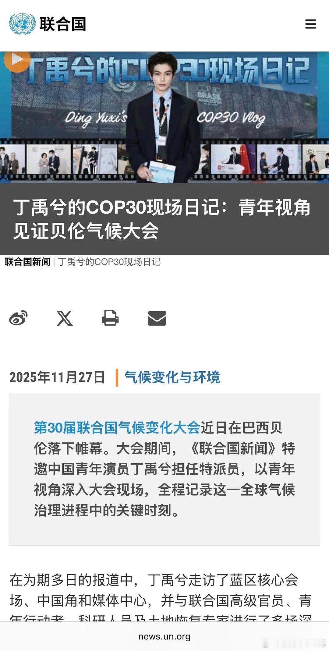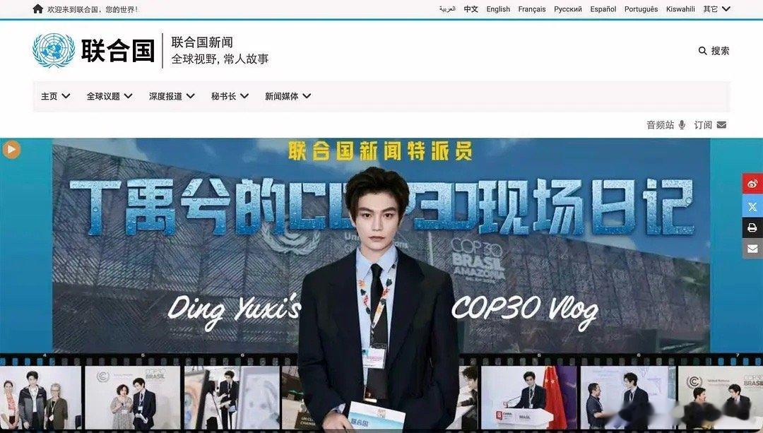 什么?你说联合国新闻官网首页头版头条是丁禹兮?感觉丁禹兮是不做演员做新闻媒体工作