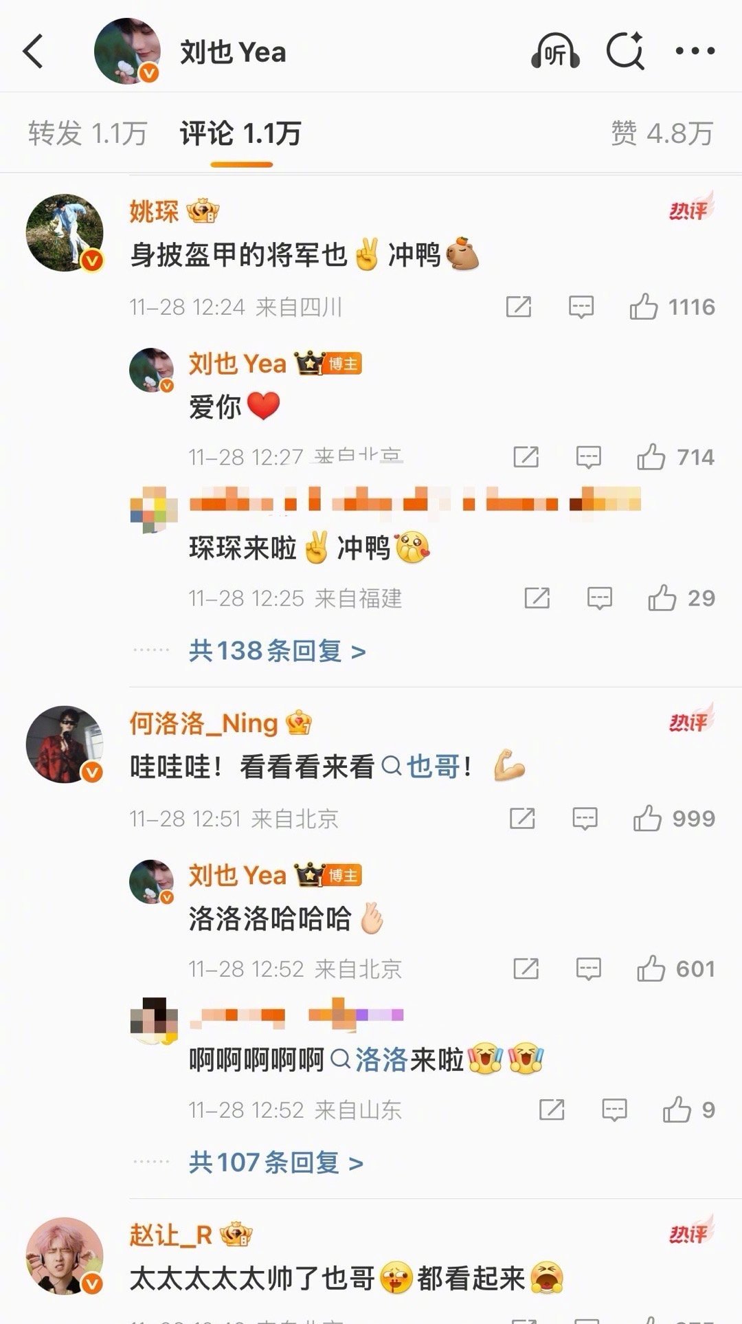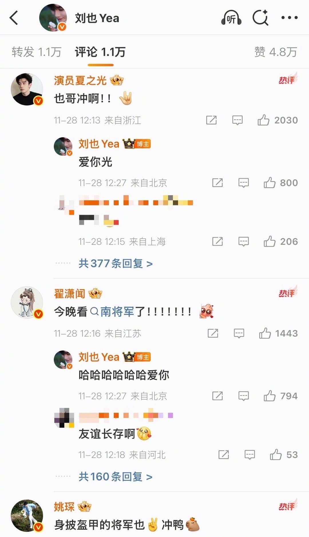 刘也评论区是要开演唱会吧新剧评论区太会整活了!R1SE成员组团来打卡,留言区秒变“限定 reunion 现场”,这架势谁看了不说一句爷青回~还有宗纬哥果然从不缺席,暖心打call妥妥的最强后盾