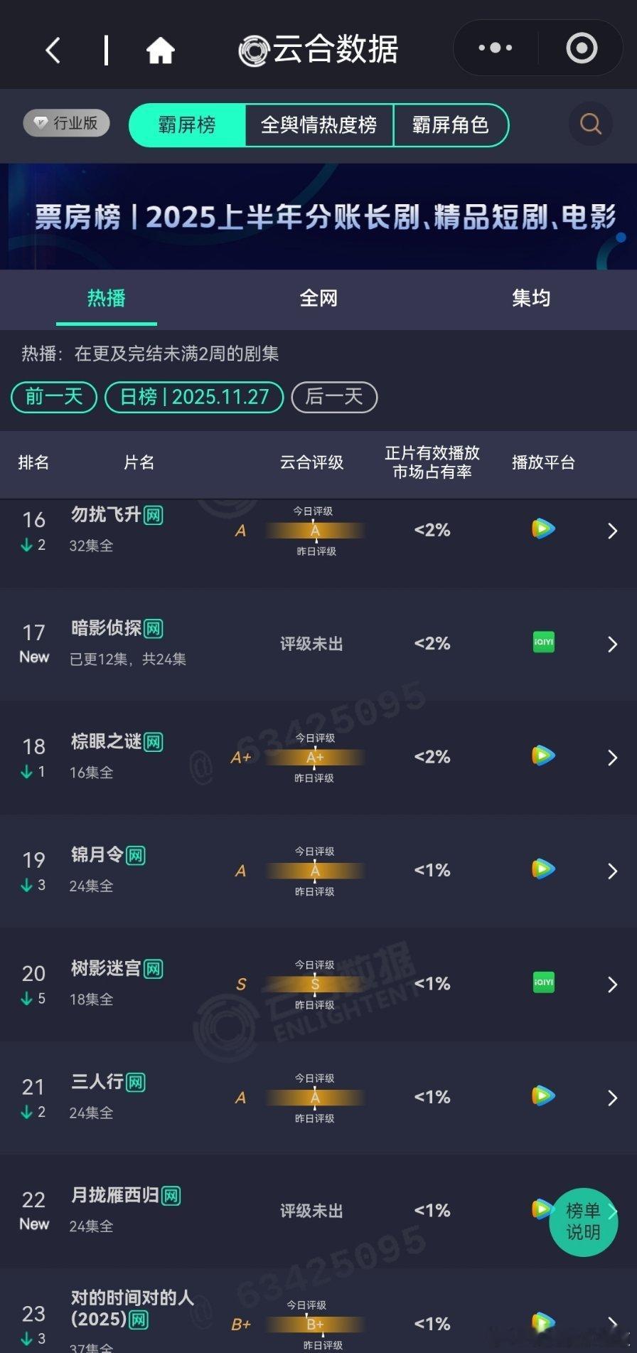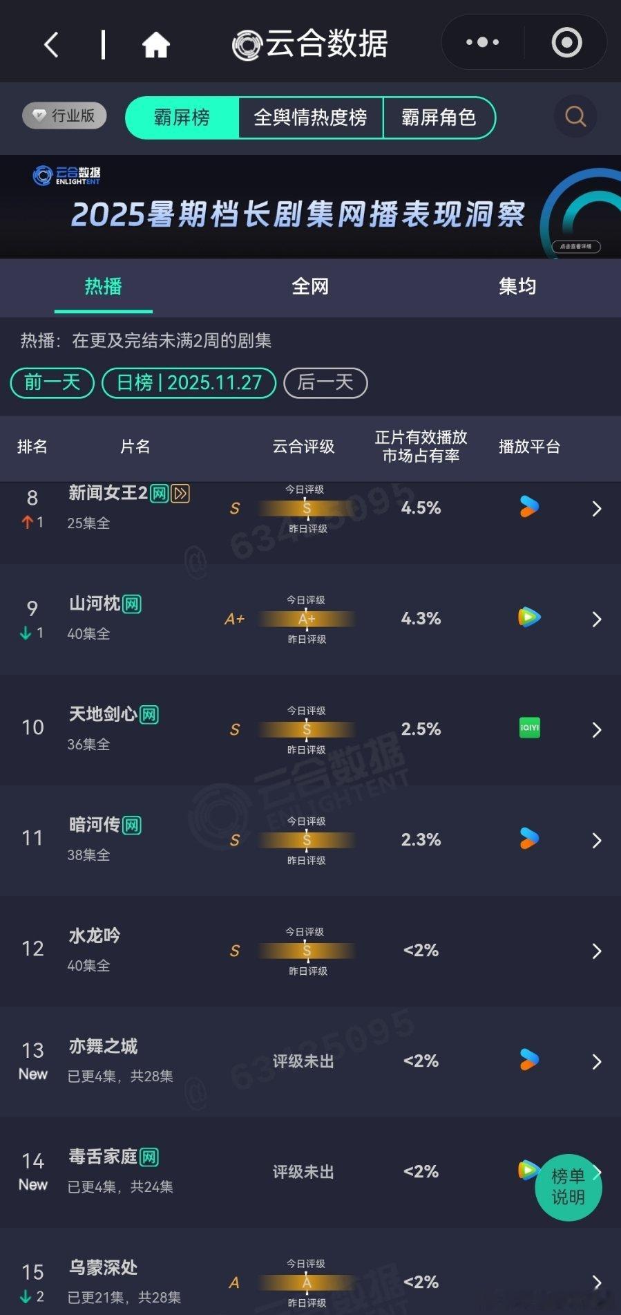 11月27日云合播放占比云合 唐朝诡事录之长安21.2%还要继续霸榜多久枭起青壤13.8%看样子大盘涨了大生意人9.3%周末可以痛快追剧了,我昨天看完前四集,真的是对流放宁古塔有了新的认知,害怕。