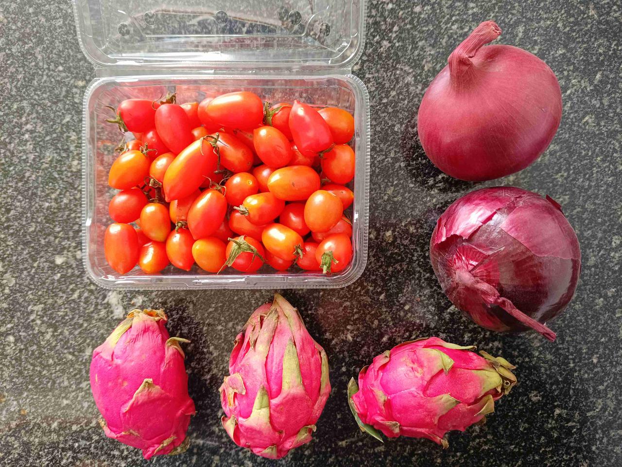 圣女果¥2.99、火龙果¥2.99 洋葱¥0.49~说服自己不气! 大家觉得网上买菜靠谱不?! 带定位晒今日生活 我的今日状态:😡生气 我这里的天气:☀️晴天