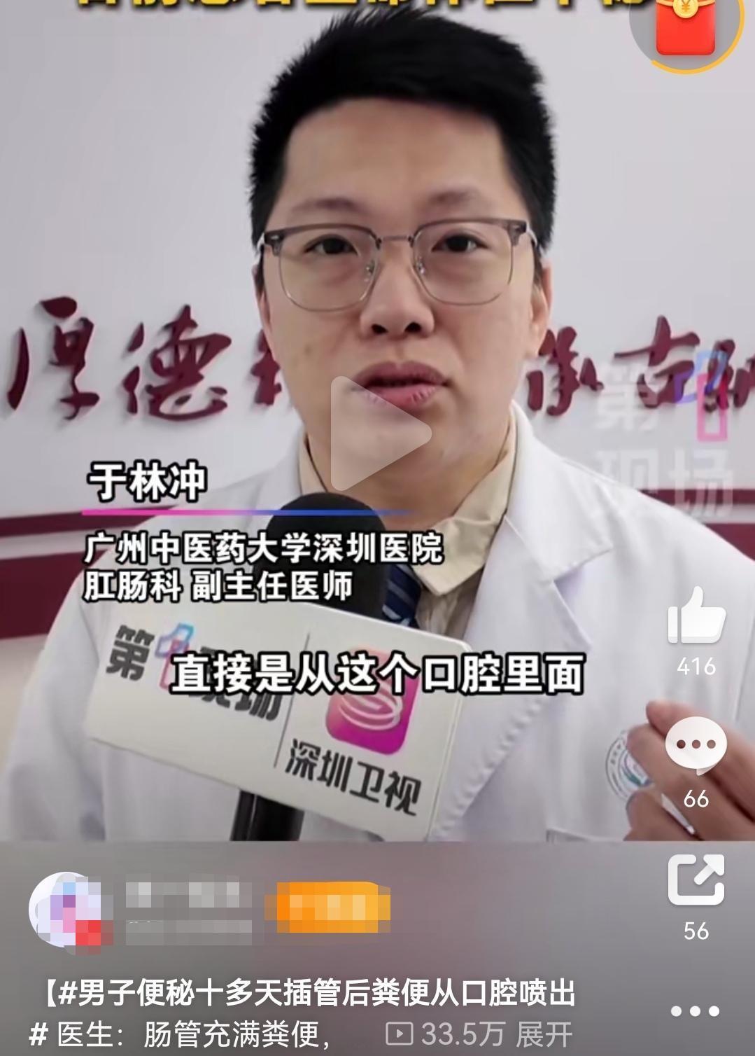 😱 深圳一男子便秘十多天,肠道竟被肿瘤堵死!手术插管时,粪便直接从口腔喷出…… 医生都震惊了:患者肠管塞满粪便,肿胀充血,再晚一天就可能引发脓毒症休克!经过ICU二十多天抢救,才转危为安。 💡医生提醒:长期便秘别硬扛,可能是肠梗阻甚至肿瘤信号!拖久了真的会“从嘴巴排便”…… (健康无小事,点赞转发提醒身边人!)
