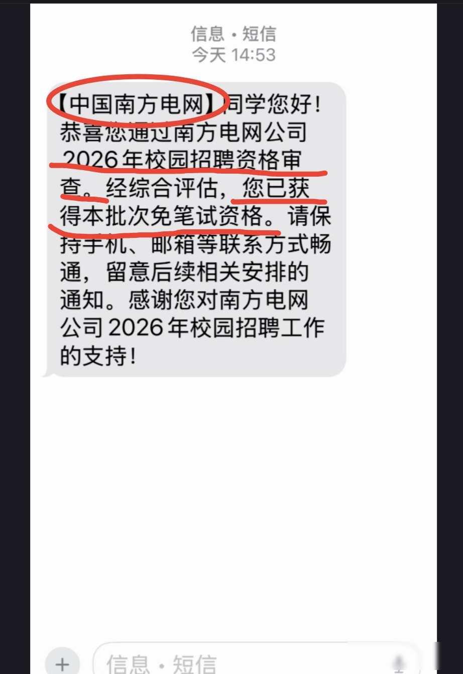 万万没想到,南方电网校招第一批竟然还有免笔试的、而且是本科生! 最近看到南方