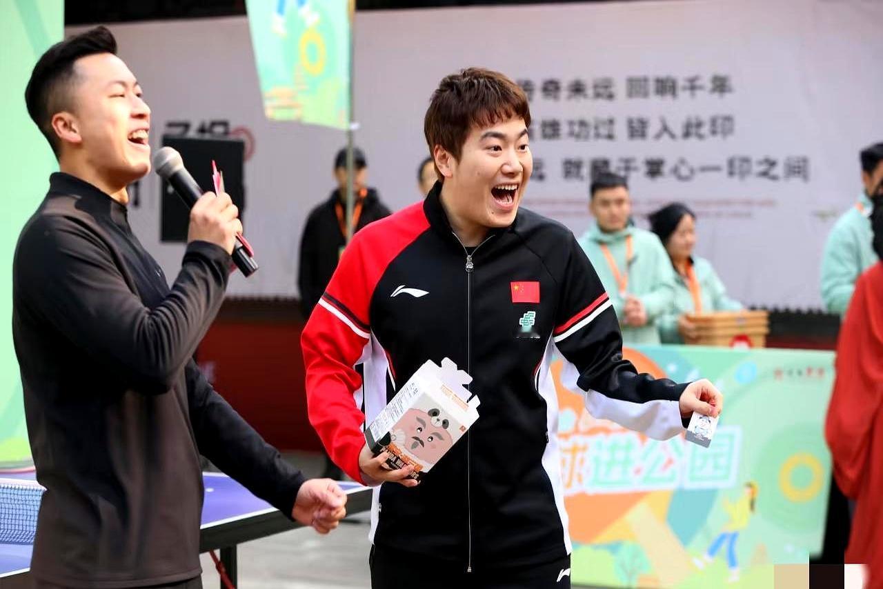 今天国乒兵分三路参加武侯区的活动, 河北兄妹俩就这么一块儿去了,大胖全程都乐呵呵的,还把手里那个诸葛亮的小玩意儿递给了莎莎,莎莎呢,就安安静静地看人家表演功夫茶。 上午玩得再开心,中午回来就立马切换状态,下午的训练课一点也没耽误。 这就是他们,场下是能放松玩闹的兄妹,一回到训练场就立刻投入到备战里去。