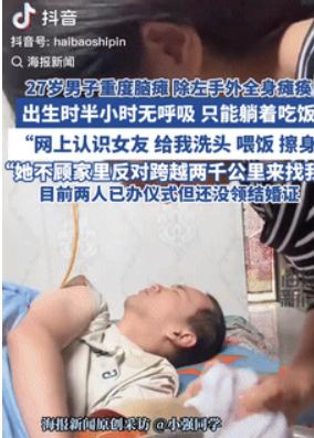 顶级恋爱脑诞生了! 24岁的湖南姑娘小雪收拾好行李,不顾父母以断绝关系相逼,坐上了开往甘肃的绿皮火车。 她要去照顾的人,是全身瘫痪的阿凯,一个她只在手机上聊了半年的脑瘫患者。 这件事在网上吵翻了天,有人说她傻,有人夸她勇敢,还有人干脆给她贴上“顶级恋爱脑”的标签。 阿凯的世界原来只有四堵墙和一部旧手机。 1997年出生时患上脑瘫,除了左手能勉强活动,他几乎无法动弹。 2022年的一天,小雪在社交平台刷到了他的视频,屏幕里那个说话含糊却眼神明亮的男生,让她心里动了一下。 她主动发去消息,没想到这一聊就停不下来,从每天的饮食起居到彼此的喜怒哀乐,两个人像是找到了缺失的另一半。 母亲哭着下跪,父亲摔了她的手机,说她是被爱情冲昏了头。 亲戚们轮流打电话劝她,说跟着一个连自己都照顾不了的人,这辈子就毁了。 小雪把自己关在房间里想了三天,本来想妥协,但想起阿凯那句“我也想被人好好爱一次”,还是偷偷买了火车票。 2023年9月12日,她攥着那张2000公里路程的K756次车票,开始了这场没人看好的奔赴。 每天清晨五点,小雪就要起床帮阿凯翻身、按摩、擦洗。 刚开始喂饭时,勺子经常打翻,阿凯急得直掉眼泪,她就握着他的左手一起练习。 冬天甘肃特别冷,她怕阿凯冻着,把筷子放在自己嘴里哈热了再喂他。 晚上给阿凯擦身时,她会讲白天遇到的趣事,虽然阿凯只能发出模糊的音节,但她总能从他的眼神里读懂回应。 网上有人说小雪是顶级恋爱脑,放着好好的日子不过非要去遭罪。 也有人佩服她的勇气,觉得现在这样纯粹的感情太少了。 我翻了几百条评论,发现大家争论的其实不是爱情本身,而是“值不值”这三个字。 有人反复问“她到底图什么”,好像爱情必须和房子、车子、存款挂钩才算正常。 中国残疾人的婚恋率一直不高,2023年残联统计年报显示还不到12%。 很多人觉得残疾人就不该有爱情,或者他们的感情不被看好。 小雪和阿凯的故事被报道后,有人开始讨论,我们是不是对残疾人的情感需求太忽视了。 85%的残疾人依赖家庭照料,这组数据背后,是无数个像阿凯这样渴望被爱却不敢奢望的人。 其实类似的故事之前也有过,2019年四川那对轮椅夫妻一起开网店,美国电影《莫娣》里的脑瘫画家和渔夫相守一生。 这些故事里的主角,都在用自己的方式告诉我们,爱情从来不是用身体条件来衡量的。 小雪说她图阿凯善良、真心和那双永远为她发光的眼睛,这话听着简单,却戳中了很多人的痛处。 很显然,大家对爱情的理解真的太不一样了。 有人把物质条件当成爱情的基础,有人却愿意为了精神契合赌上一生。 日本的介护保险制度能帮残疾人家庭减轻不少负担,咱们这边85%的照料责任都压在家庭身上。 如此看来,小雪的选择不光是对爱情的考验,更是对现实的挑战。 小雪和阿凯的故事,让我们看到爱情可以超越很多东西,年龄、地域、身体条件,甚至世俗的眼光。 但光靠两个人的坚持还不够,社会对残疾人的支持体系如果能更完善一些,或许这样的爱情就不会显得那么“另类”了。 毕竟感情这事,从来不该用“值不值”来计算。 希望有一天,我们讨论这样的故事时,不再惊讶于“她图什么”,而是真心祝福“他们真幸福”。 当社会能给残疾人更多支持,当大家能用平常心看待不同形式的爱情,或许“恋爱脑”这样的标签,就不会再贴在勇敢追求幸福的人身上了。