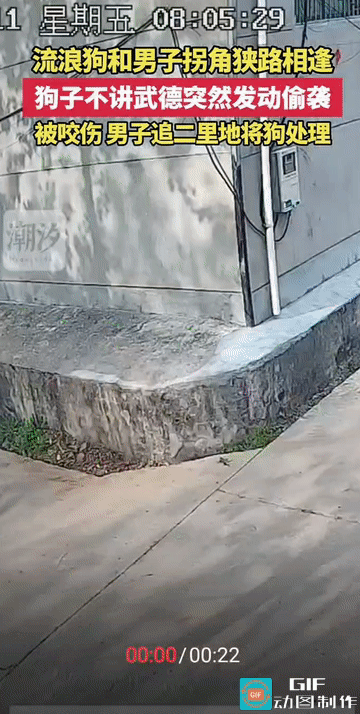 “有仇当场就报了!”山东,一名男子与一只流浪狗,在街头一拐角处不期而遇,流浪狗不讲武德,突然发动偷袭,将男子咬伤。愤怒的男子没有退缩,反而奋起直追二里地,最终将狗“处理”掉! 来源:【蓝睛】 从视频中看到,一名身穿蓝色上衣的男子抱着双臂在路上走着,而他的对面有一只流浪狗也正在路上奔跑着,双方就这样在这条路中间的一拐角处不期而遇! 双方狭路相逢,而男子本来也没注意到流浪狗,没想到的是就在双方“擦肩而过”之时,狗子不讲武德,竟突然回头发动偷袭,男子躲闪不及,被狗咬伤! 男子腿部的伤口传来火辣辣的疼痛,瞬间激起了他的怒火! 面对袭击,男子没有选择逃避,而是做出了惊人的决定——反追流浪狗! 于是,一场追逐战在街头展开! 男子不顾伤痛,奋力追赶流浪狗长达二里地。愤怒与肾上腺素共同作用下,他最终成功追上了这只偷袭他的流浪狗,并将其“处理”掉! 令人意外的是,男子最后竟又将狗子拎回来,扔到了“案发地”! 此事,引发了网友们的争议! 有一部分网友支持男子的做法。他们认为现在的“狗患”太严重了,有不少人都在无意中被流浪狗伤到了,这些流浪狗完全没有人性,就应该狠一点,要不然,还不知有多少无辜之人被其咬伤呢? 还有一部分网友觉得男子做得太过了。他们觉得流浪狗长期在外流浪,吃不饱,也睡不好,本身就很可怜了,而且看男子伤的也不重,估计就是破了点皮,打它一顿就好了,没必要要了它的命,毕竟这也是一条活生生的生命啊! 那么,对于此事,大家有什么看法呢?