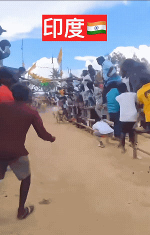 印度的“游戏”太费人,让牛在赛道中奔跑,自诩为勇士的站在赛道当中,等到牛临近的时候再躲开,贴的牛越近的人越能得到牛神的赐福,已经有很多“勇士”染红了牛角,但是这个游戏的危险性不仅是牛头,还有牛脖子上的绳套。 绳套是非常危险的,随着牛的高速奔跑,即使被绳子抽一下也会疼的够呛,如果不幸被绳套锁住,怕是要被摩擦的青一块紫一块了。