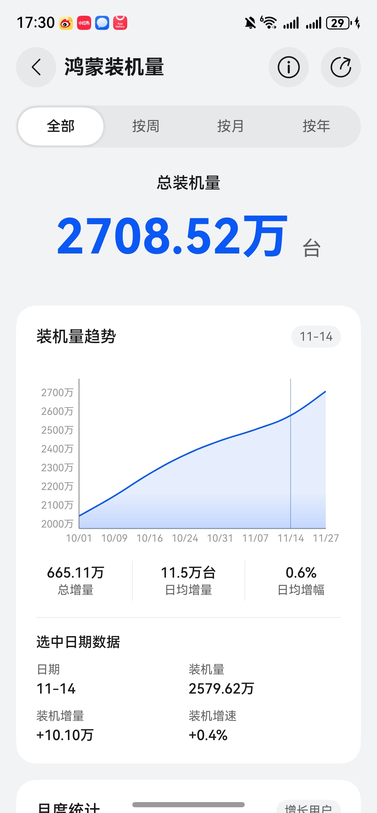 两天没看 HarmonyOS 6 设备装机量直接干到了2700万,预测后一个月很快上3000万,那么问题来了鸿蒙4、5、6、你是哪个版本?