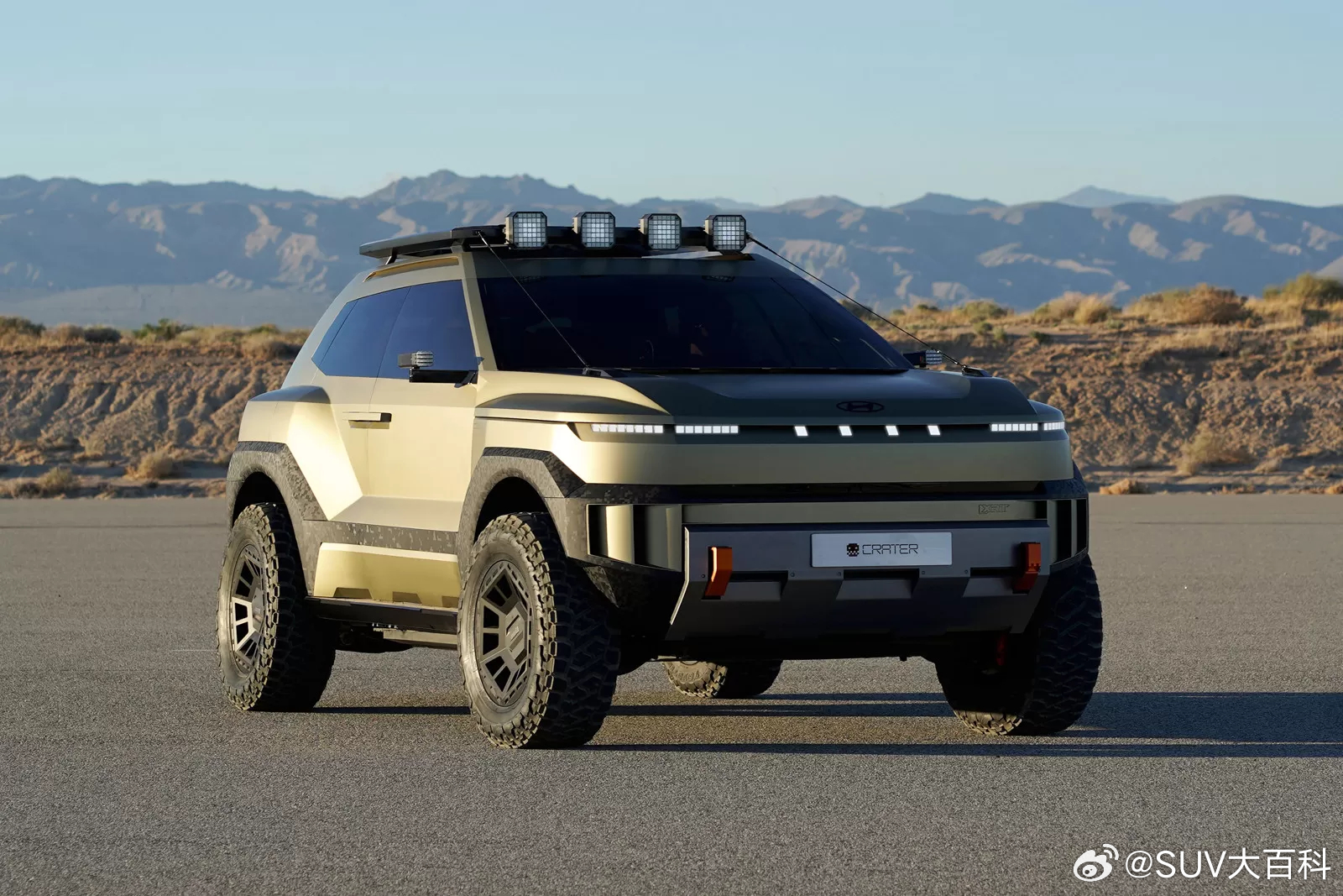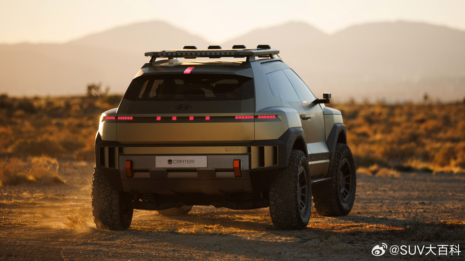 2025洛杉矶车展 ,现代Crater概念车首发亮相,可惜这车没有量产计划,更多展现XRT系列未来设计方向,可能应用于IONIQ 5、帕里斯帝等车型的XRT衍生版设计Crater有着硬朗科幻的机甲风格,越野探照灯、格挡绳、33吋越野胎等设计,一看就不好惹;但是在前拖车钩上,还有类似机器人的小设计,现代称为“Crater Man”,类似处理还体现在内饰,增添了几分“人情味”内饰更加硬核,一根贯穿式圆柱成为仪表台的主体结构,中间采用齿轮设计,两侧由绑带链接,上方配备四个可拆装显示屏,支持自定义显示内容;方向盘和座椅完全采用赛化风格,即便后排座椅也是四点式安全带,但是无B柱对开门的设计,使得B柱位置也能看到防滚架动力系统参数未公布,只知道支持多种驾驶模式,还会配备分动箱,至于这套设计如何与新能源结合,只能静待其变…… SUV大百科 大v聊车