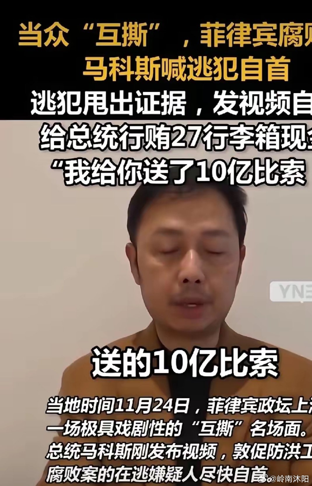 菲律宾政坛惊天互撕:外逃议员曝27箱现金行贿,马科斯政府陷执政危机菲律宾总统马科斯正面临上任以来最严峻的政治风暴,一场牵扯5450亿比索(约合人民币680亿元)的防洪工程贪腐案持续发酵,如今外逃前议员的实名指控更是将其推向风口浪尖,执政地位岌岌可危。这场危机的导火索始于2025年7月,马科斯在国情咨文中自曝全国近1万项防洪工程存在严重异常,大量“幽灵工程”和劣质设施被曝光,涉案金额高达菲律宾全年GDP的2%左右。民众愤怒情绪持续升级,9月底起,马尼拉等多地爆发“万亿比索游行”大规模抗议活动,要求彻查贪腐。迫于舆论压力,马科斯的表弟、众议院议长马丁·罗穆亚尔德斯因涉案被迫辞职,参议院议长也遭罢免,多名涉案高官出逃海外,进一步激化了民众不满。11月24日,马科斯发布视频讲话,宣布已针对涉案人员发出16份逮捕令,称已有7人落网、2人愿自首,并誓言要在圣诞节前将所有逃犯缉拿归案,态度强硬地警告包庇者将依法追责。然而,仅几小时后,外逃的前众议员扎尔迪·许(华裔)便发布了一段近10分钟的视频,直接将矛头对准马科斯本人,上演了戏剧性的“反手爆料”。扎尔迪·许在视频中详细还原了行贿全过程:2024年11月,他按马科斯表弟罗穆亚尔德斯的直接指示,分两次将10亿比索(约1.25亿人民币)现金送至马科斯指定的马尼拉私宅,这笔钱是为了给马科斯“补上”未分到的工程好处费,中间人正是司法部副部长何塞·卡迪兹。他还曝光了两张关键证据照片——27个塞满现金的行李箱,以及标注付款明细、代号“RR”的转账清单。此外,扎尔迪还揭露了一个2022-2025年的“顶层回扣计划”,声称共有570亿比索(约71亿人民币)工程款项流入马科斯与罗穆亚尔德斯口袋,每月回扣由二人“一人一半”分配。他还透露,自己早在3月就收到罗穆亚尔德斯的死亡威胁,这也是其不敢回国的核心原因。此前,罗穆亚尔德斯涉案已是板上钉钉,马科斯是否牵涉其中的质疑从未停歇,而扎尔迪·许的指控逻辑清晰、证据具体,绝非无中生有。面对重磅爆料,马科斯的回应简单直接:要求扎尔迪·许回国对质,否则指控均为虚假。这场政坛“惊天互撕”已让菲律宾局势陷入混乱。若扎尔迪·许后续曝出更多实质性证据,马科斯政府大概率将爆发严重执政危机,甚至面临倒台风险,其能否摆脱父亲老马科斯的覆辙,成为当前菲律宾政坛最大悬念。目前,案件调查仍在推进,马科斯能否兑现“圣诞节前追责”的承诺、指控是否属实,仍有待进一步验证。