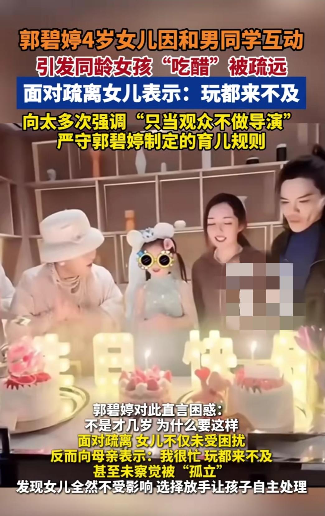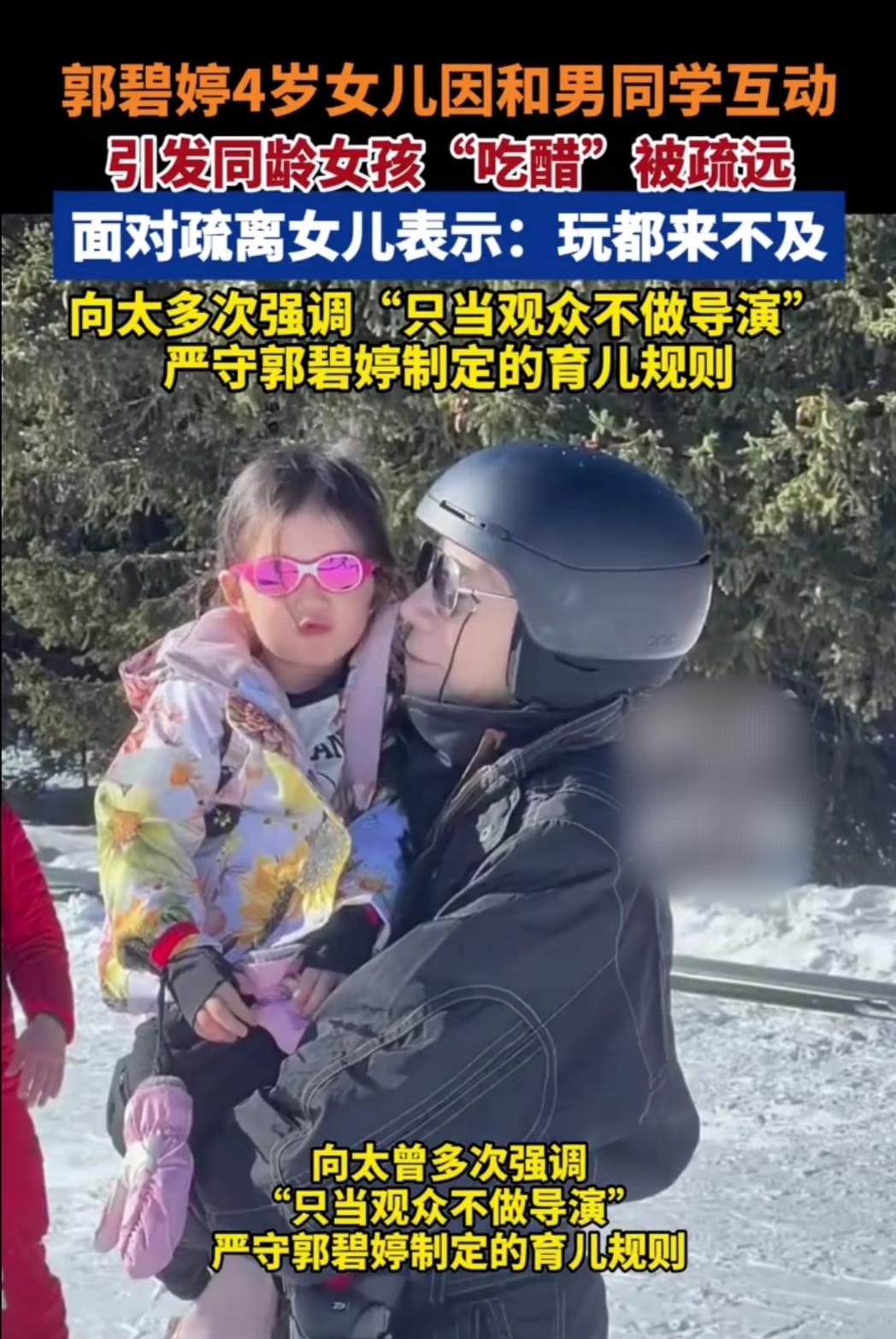 郭碧婷女儿这波操作,真把我看服了!幼儿园里被小闺蜜疏远,原因居然是“抢了对方喜欢的男同学”,结果这4岁小丫头压根没当回事,还跟妈妈说“玩都来不及”。 这事儿郭碧婷一开始也慌了:好好的闺蜜怎么突然不理人?找老师一问才知道,是小闺蜜吃了女儿和男同学互动的醋。可当她小心翼翼问女儿“难不难过”,孩子一脸懵:“没有啊,大家都跟我玩,我可忙了!” 更圈粉的是向太的态度——她早说过“只当观众不做导演”,全程守着郭碧婷的育儿规则,没插手也没说教。这家人的通透,真的太少见了:没把小孩的社交矛盾当“宫斗”,更没把成人的焦虑强加给孩子。 现在好多家长怕孩子受委屈,一有点摩擦就冲上去“护崽”,可孩子的世界哪有那么复杂?像这小丫头一样,心里装满自己的快乐,哪有空管别人的小情绪?这才是童年该有的样子啊!