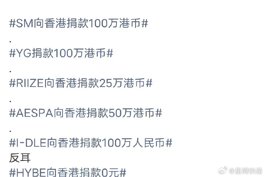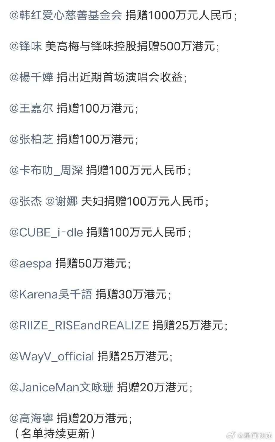 大埔火灾明星纷纷捐赠,韩国娱乐公司也献爱了这份名单只是不完全统计,还有很多艺人也都在捐赠的路上,有了大家的齐心协力,相信一定会攻克难关的。