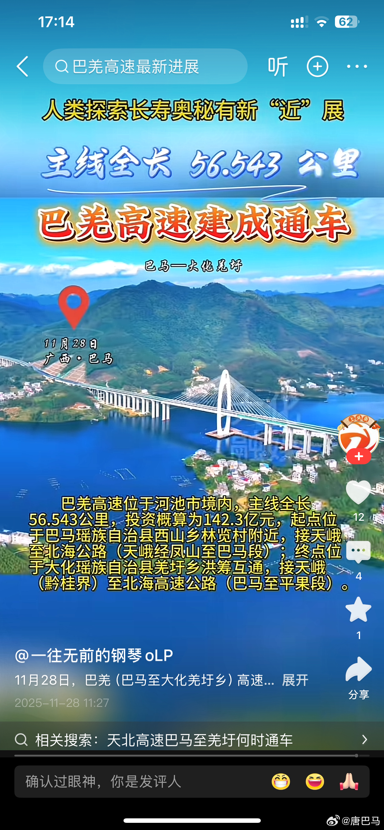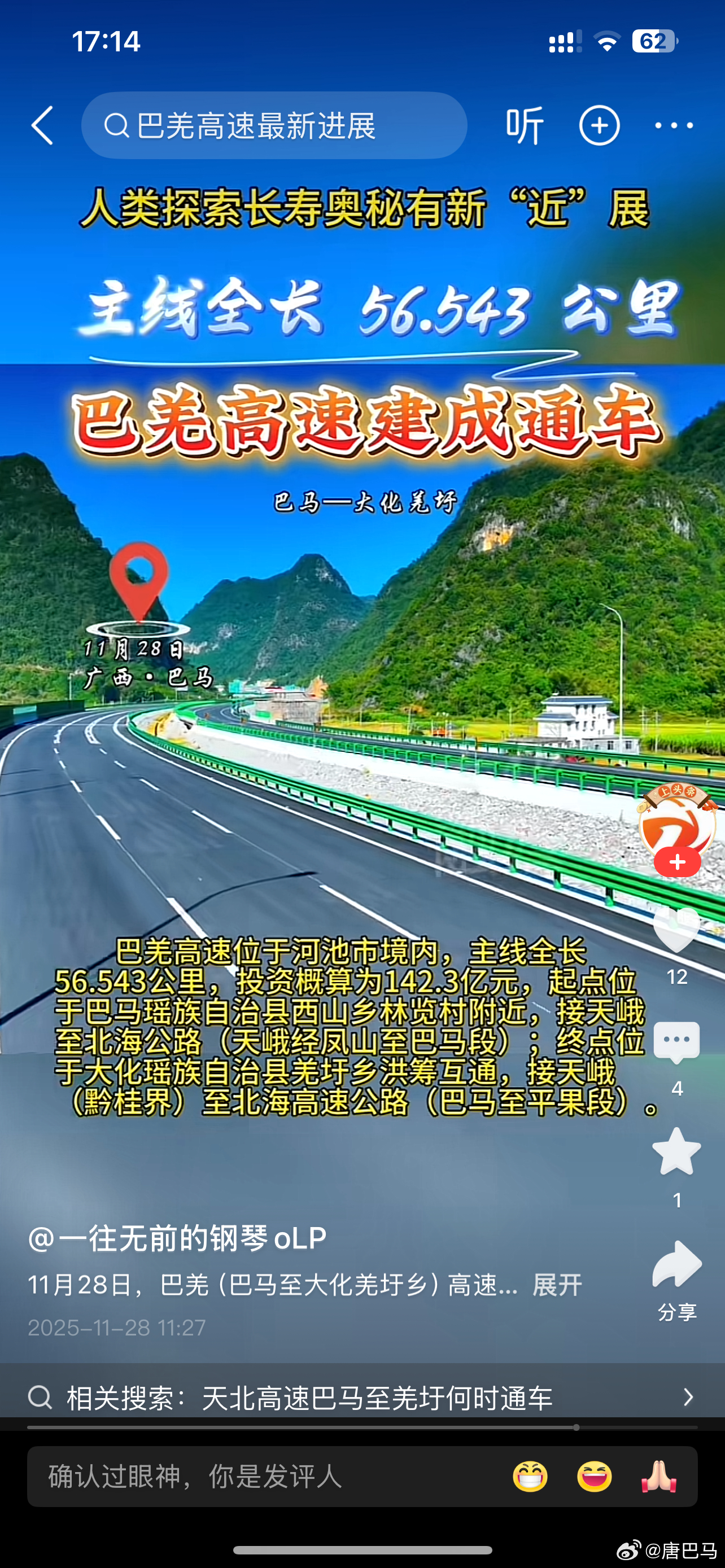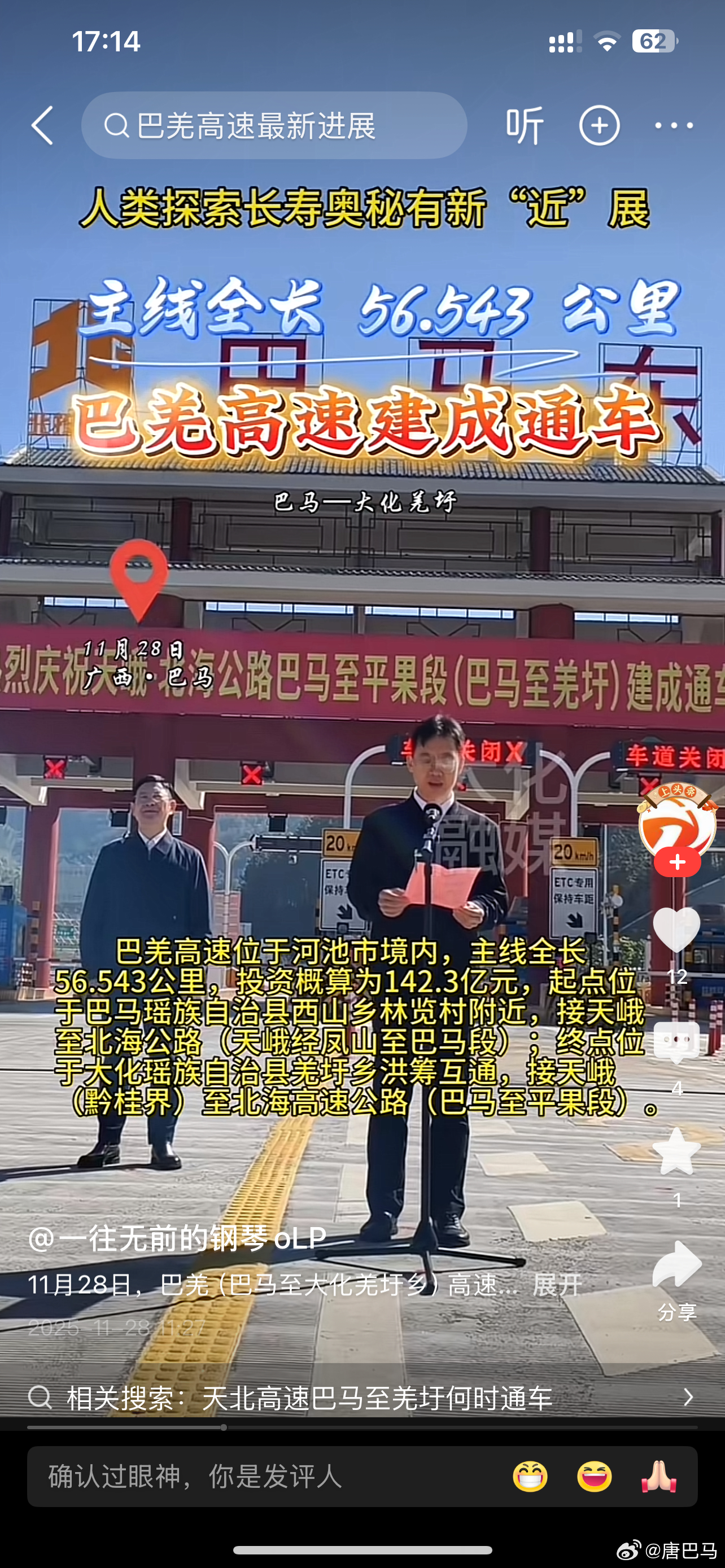 重磅!巴羌高速今日11月28日正式通车,串联巴马 东兰 大化 三县。天峨—北海公路巴马至平果段(巴马至羌圩)(简称巴羌高速)。