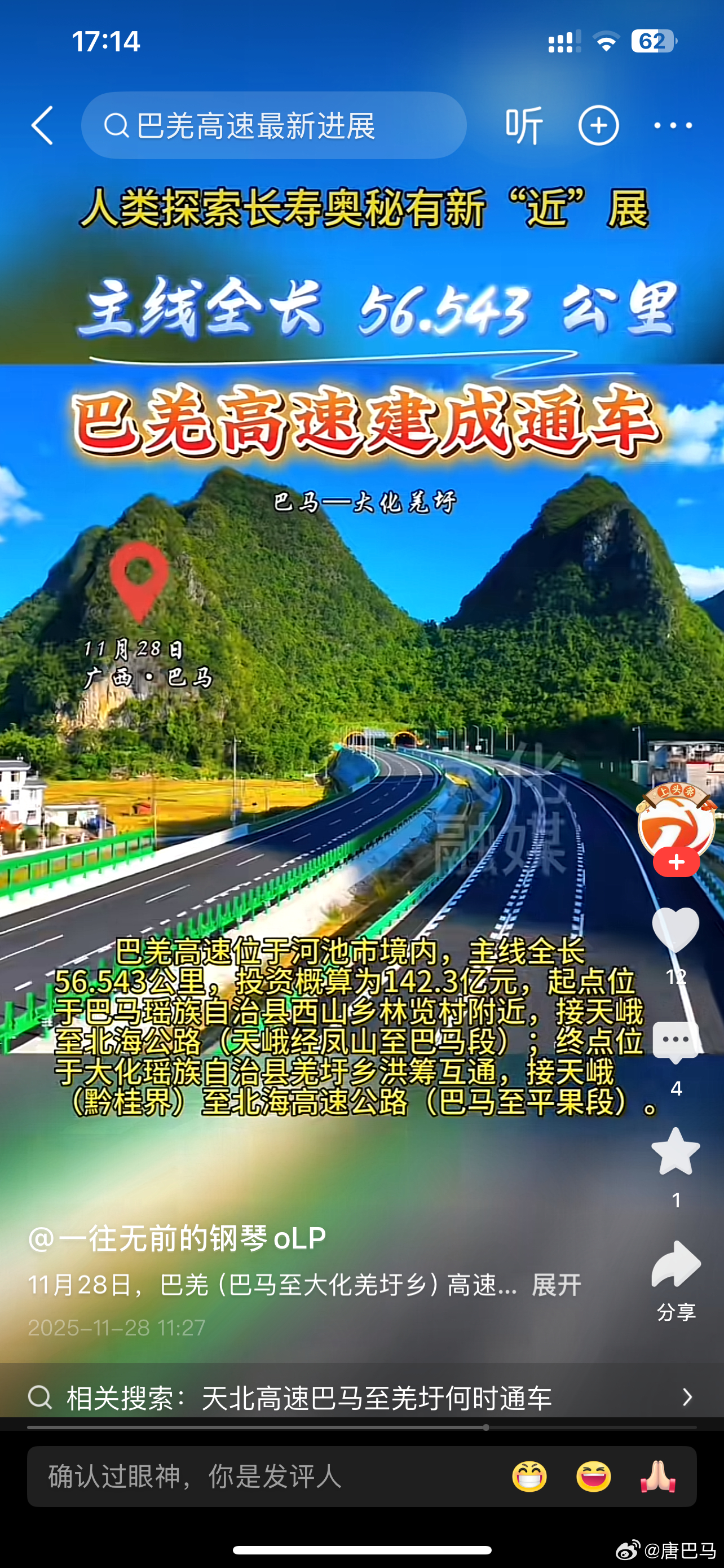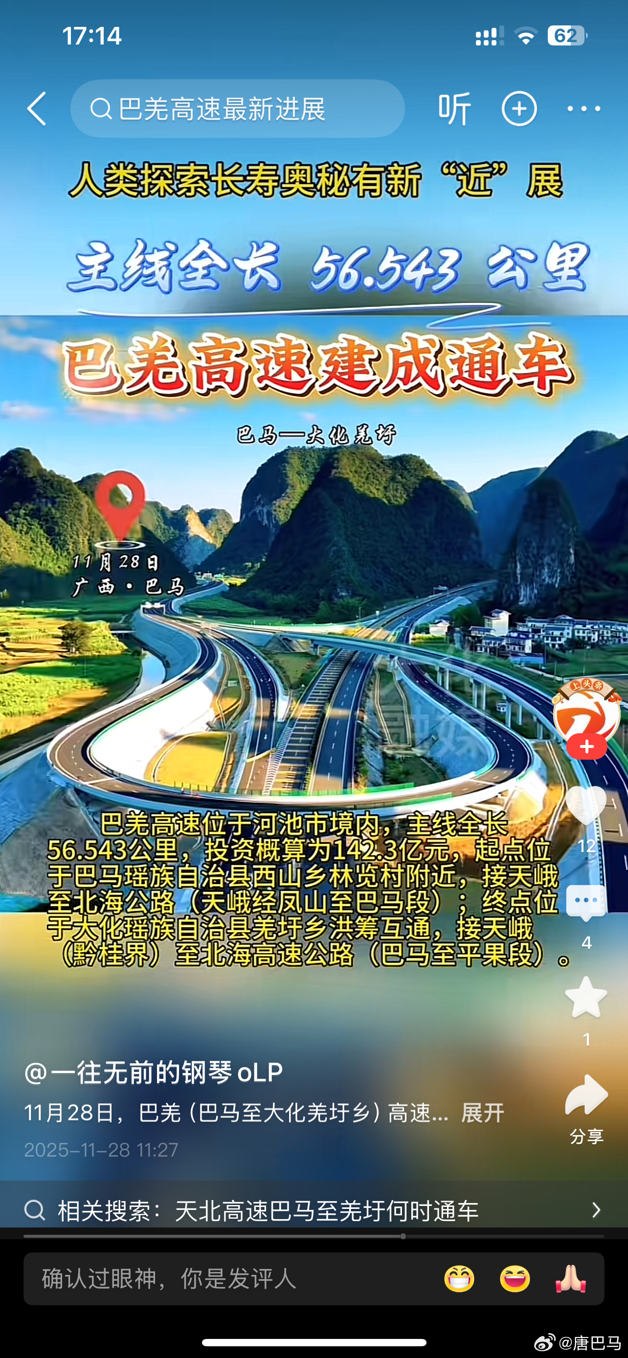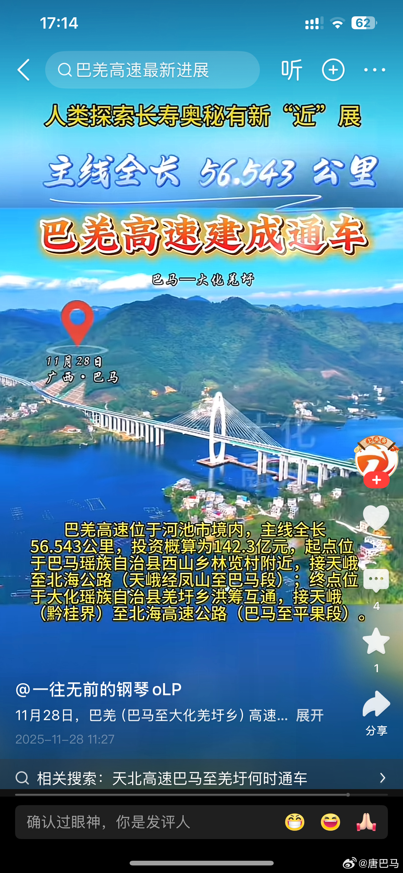 重磅!巴羌高速今日11月28日正式通车,串联巴马 东兰 大化 三县。天峨—北海公路巴马至平果段(巴马至羌圩)(简称巴羌高速)。