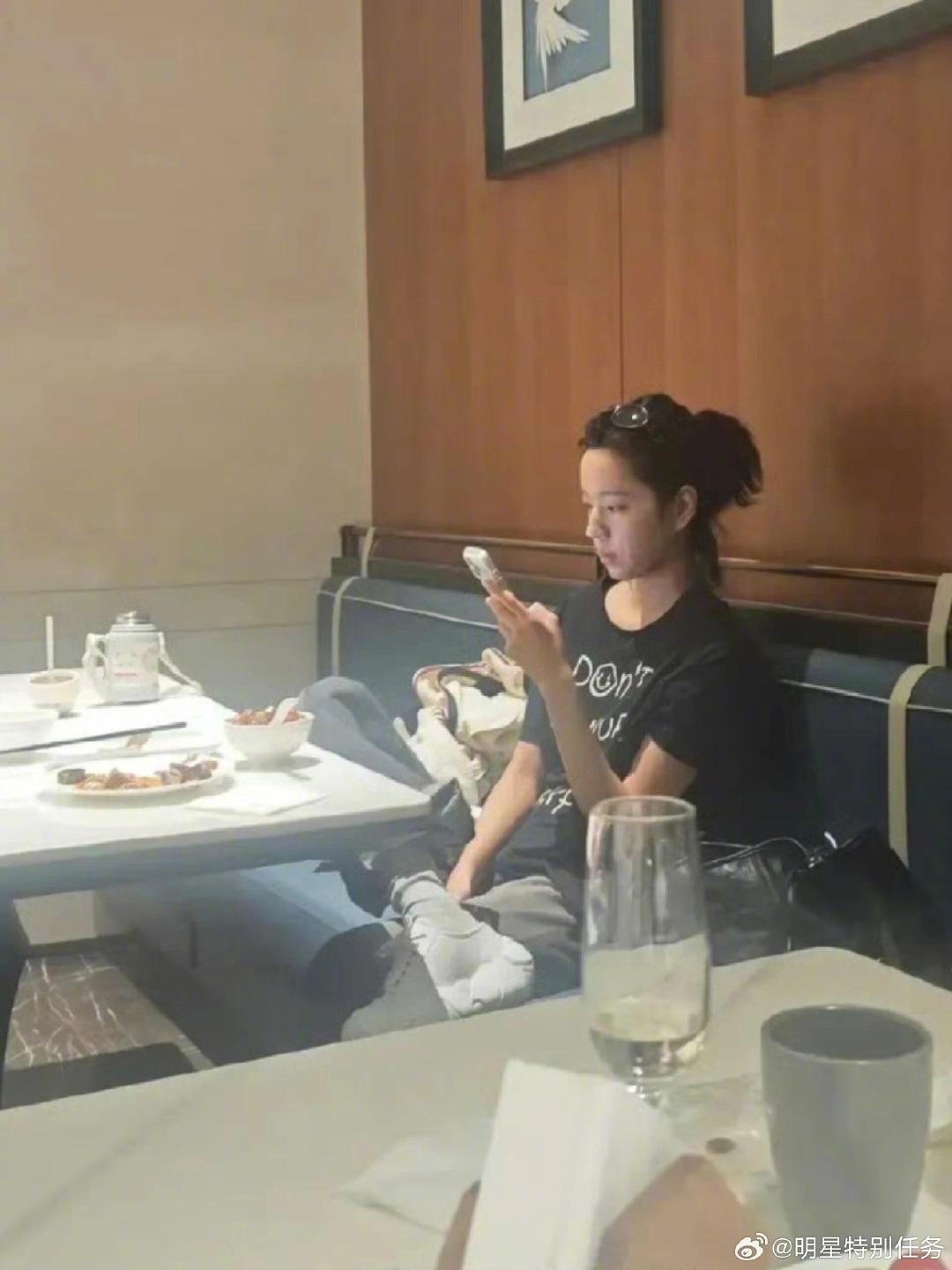 偶遇庄达菲吃饭敷面膜网友偶遇一边吃饭一边敷面膜,满满得松弛感,私下状态也好美!